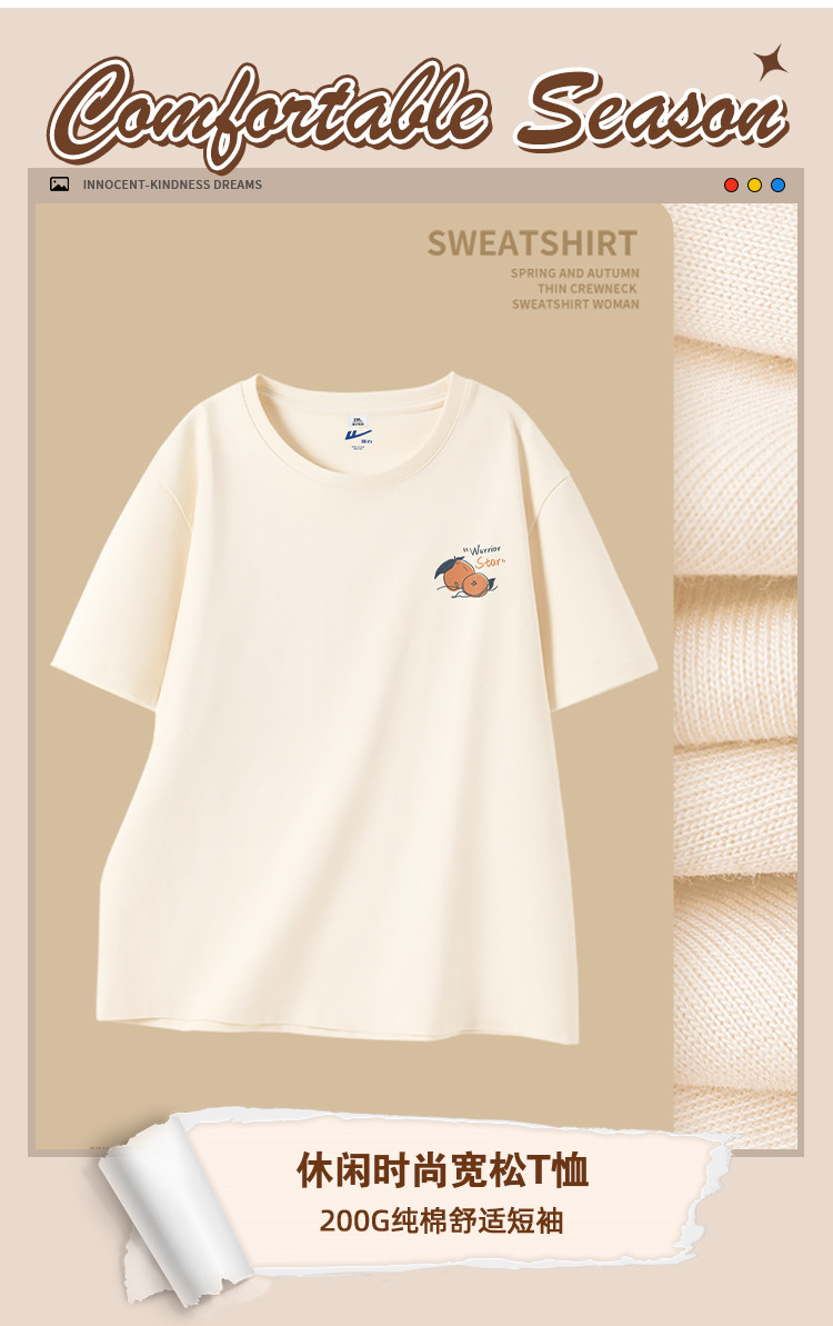 商品名称:【女装】夏季女式圆领休闲T恤宽松纯棉透气大码女装 223699