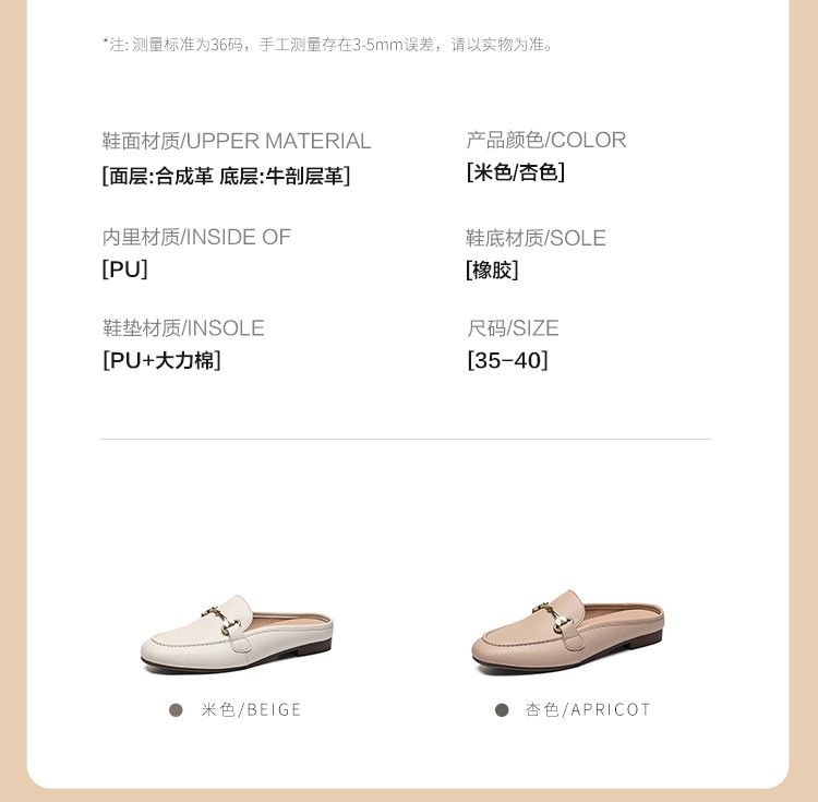 商品名称:【金属扣】简约百搭一脚蹬单鞋女夏拖鞋女穆勒鞋外穿凉拖鞋半拖女 362624