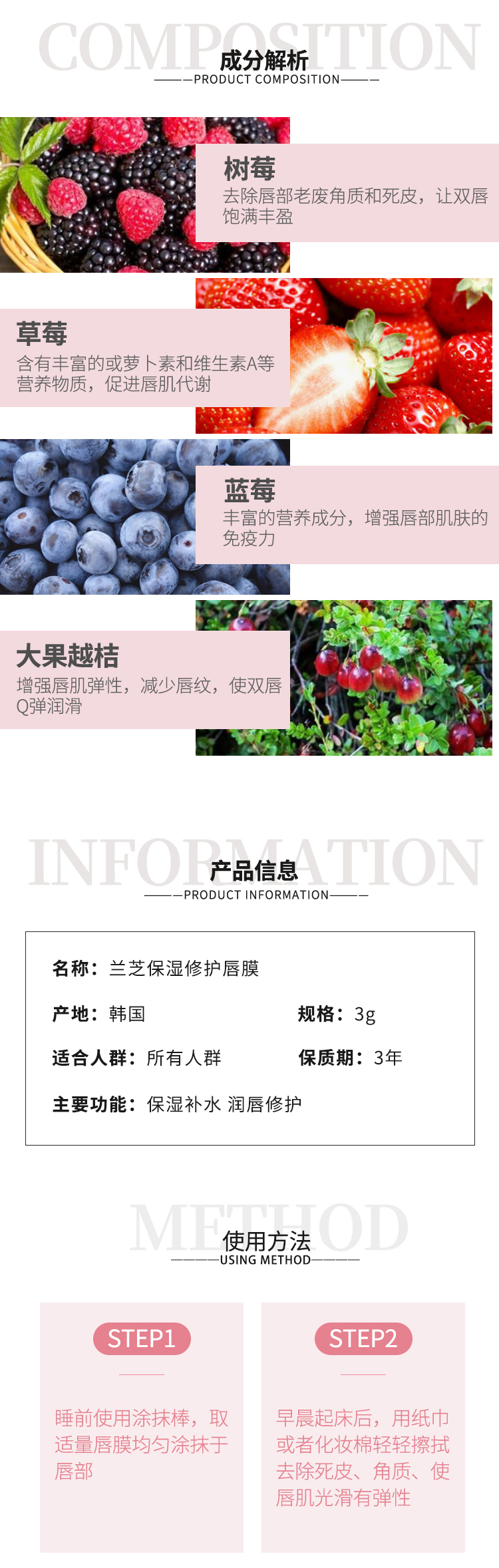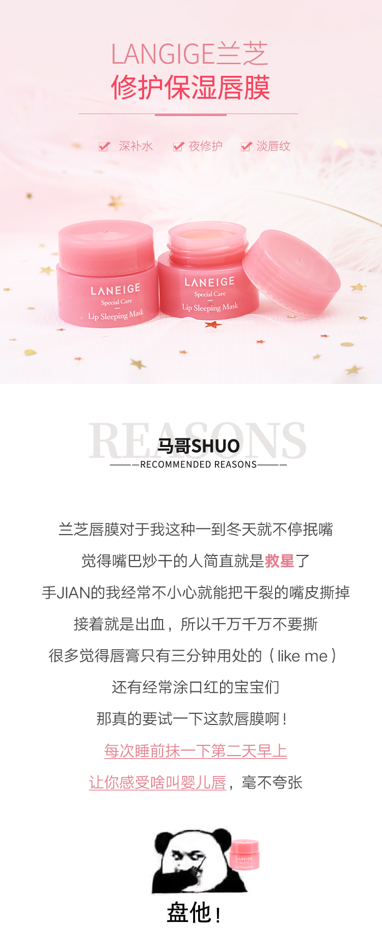 商品名称:Laneige/兰芝 水润修护睡眠唇膜 小样 3g/瓶