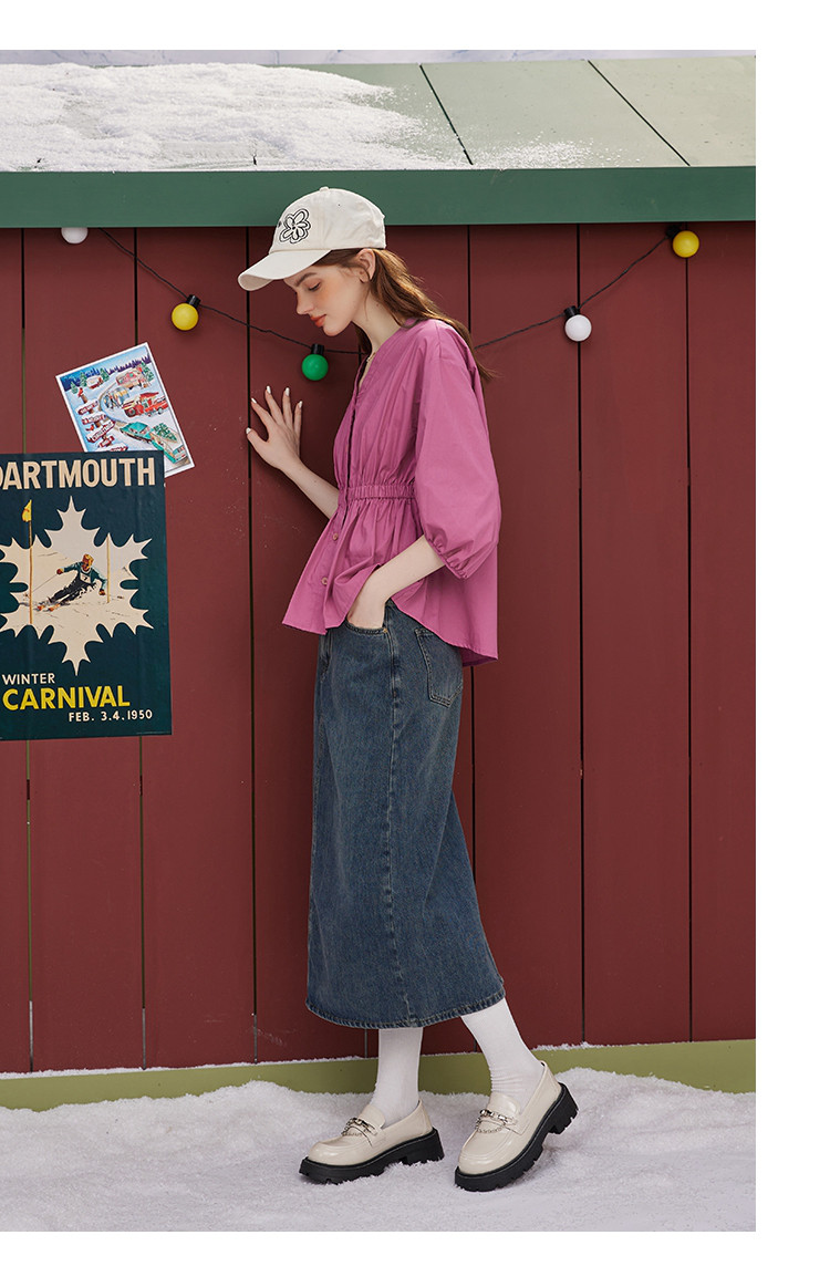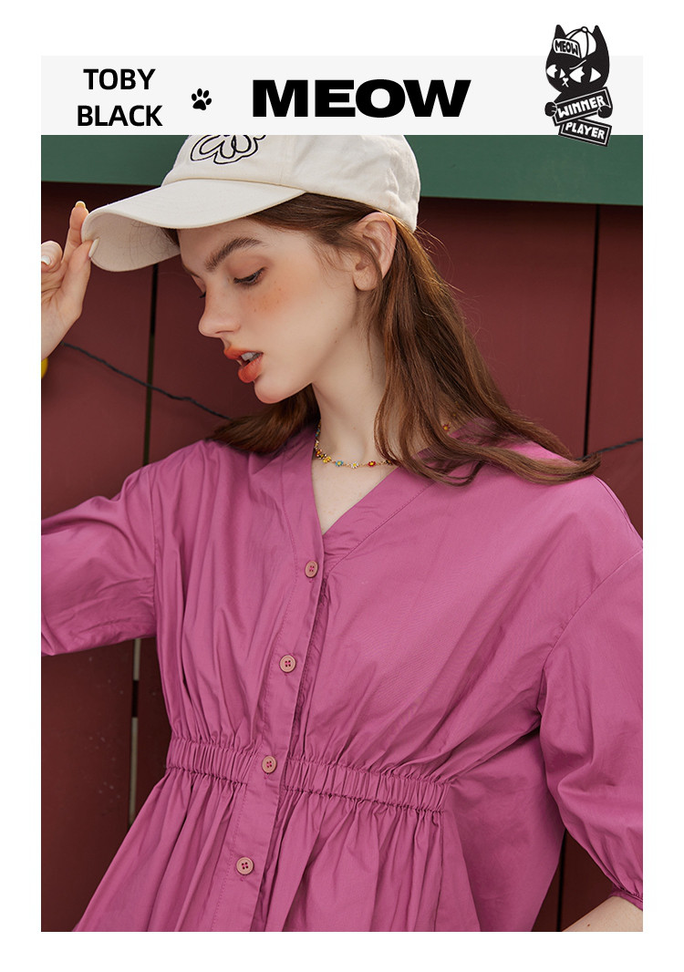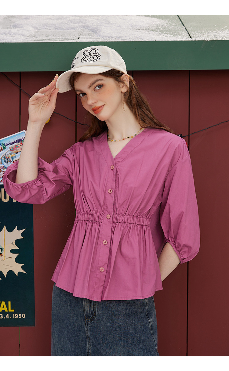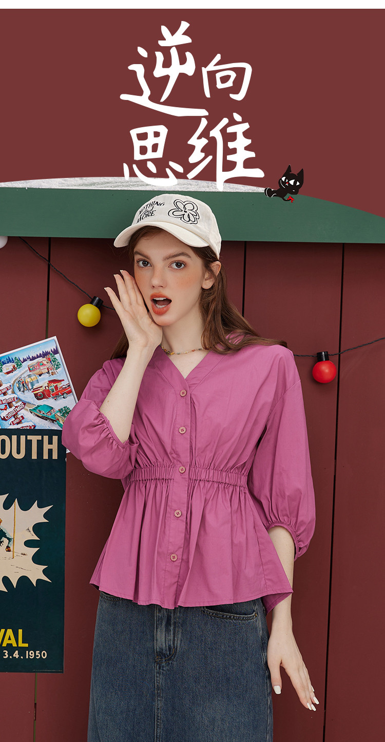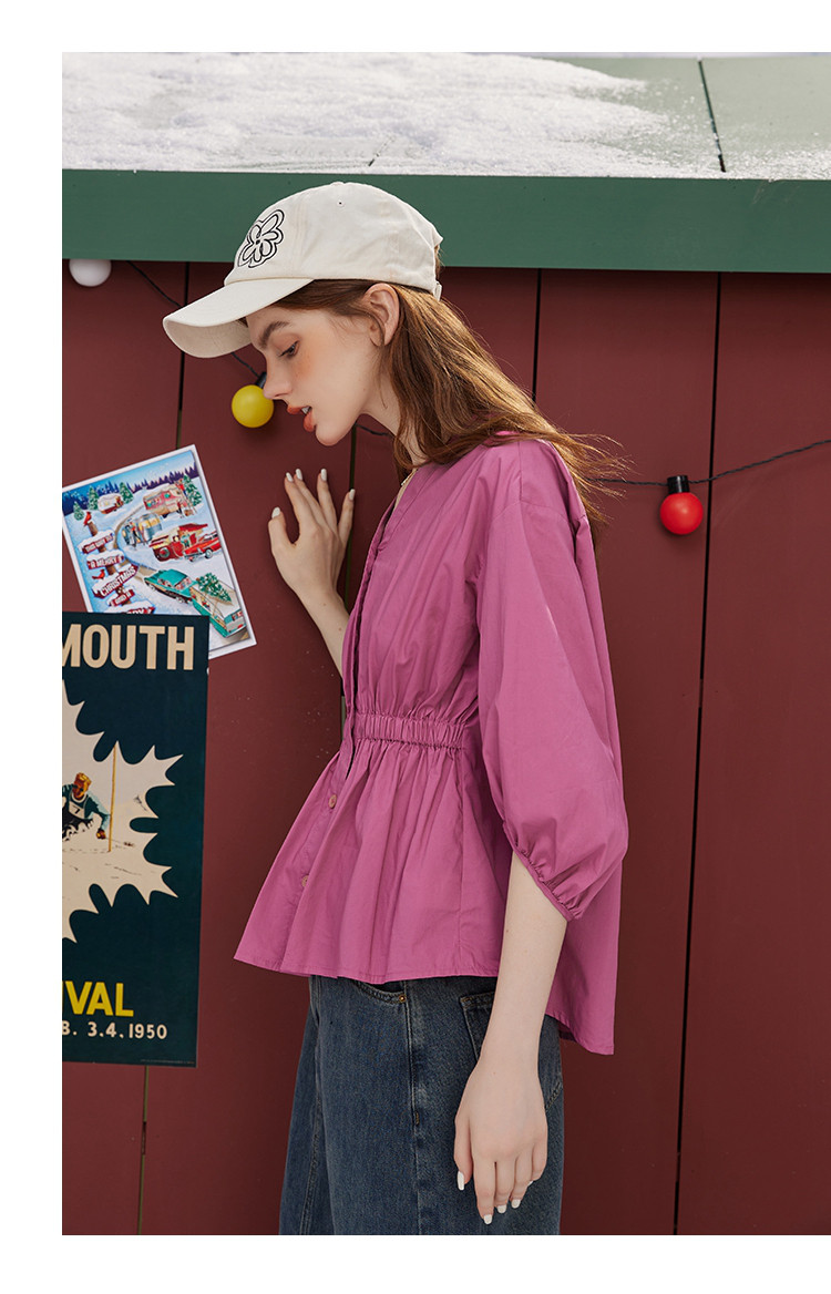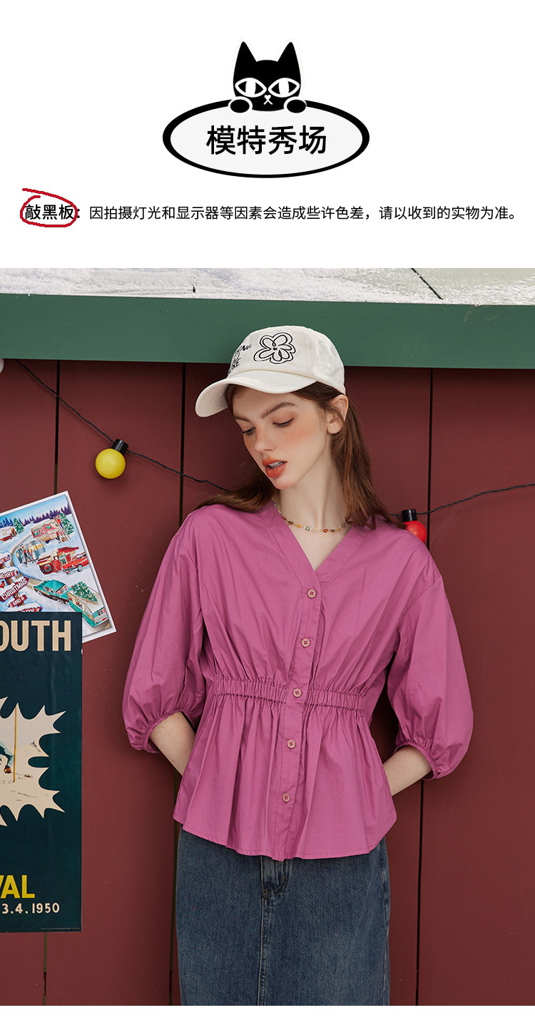 商品名称:【100%棉】灯笼袖减龄娃娃衫夏季气质收腰女式衬衫 701277