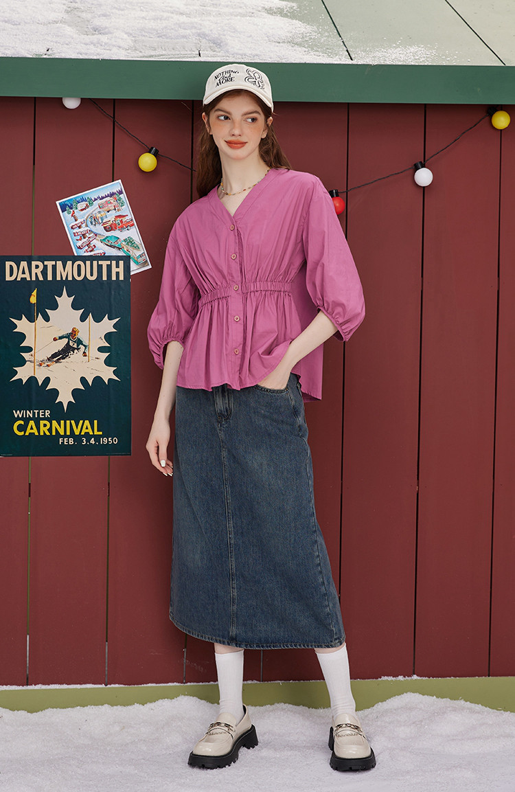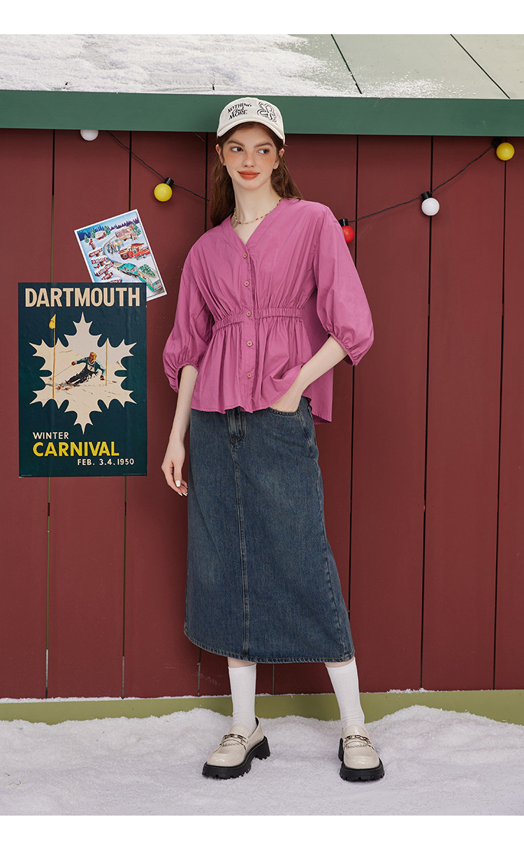【100%棉】灯笼袖减龄娃娃衫夏季气质收腰女式衬衫 701277