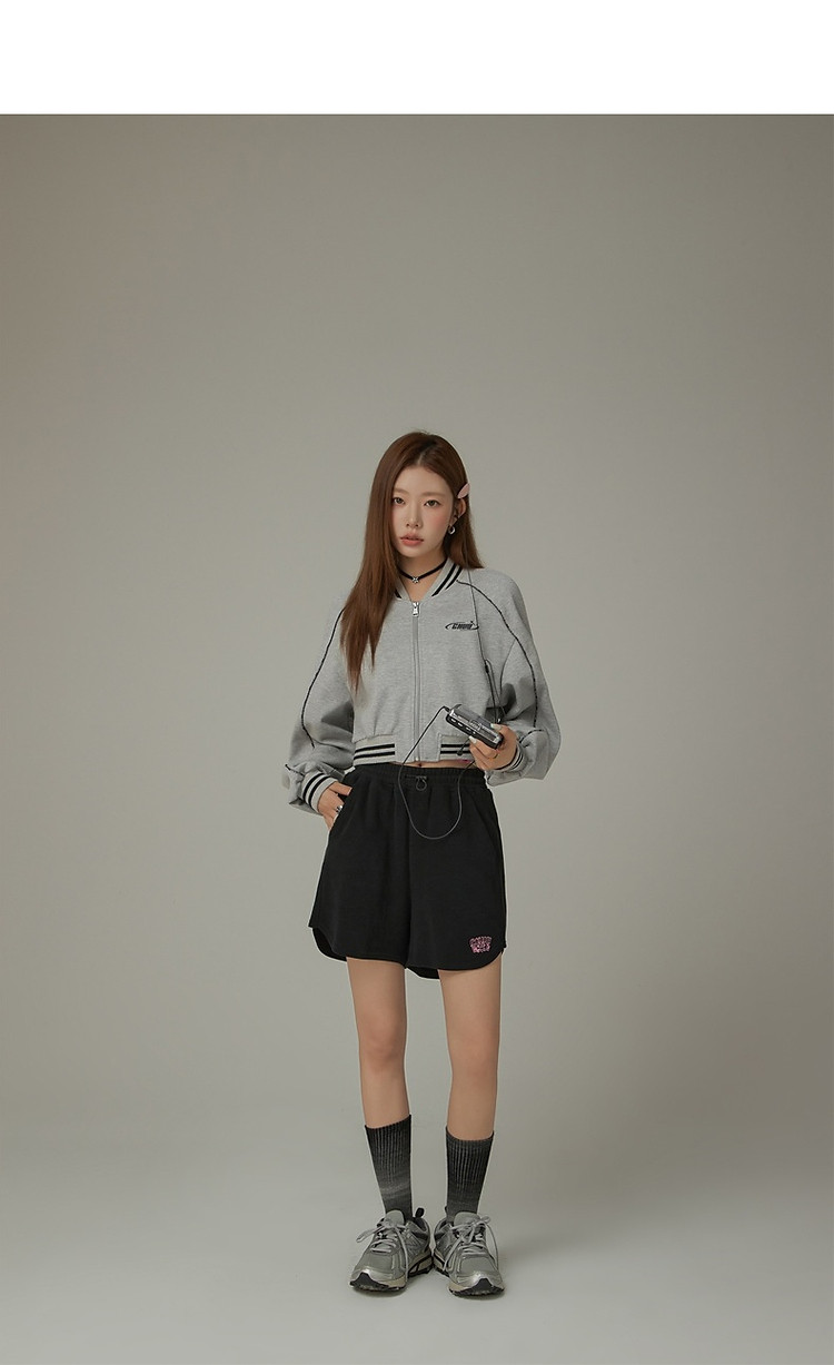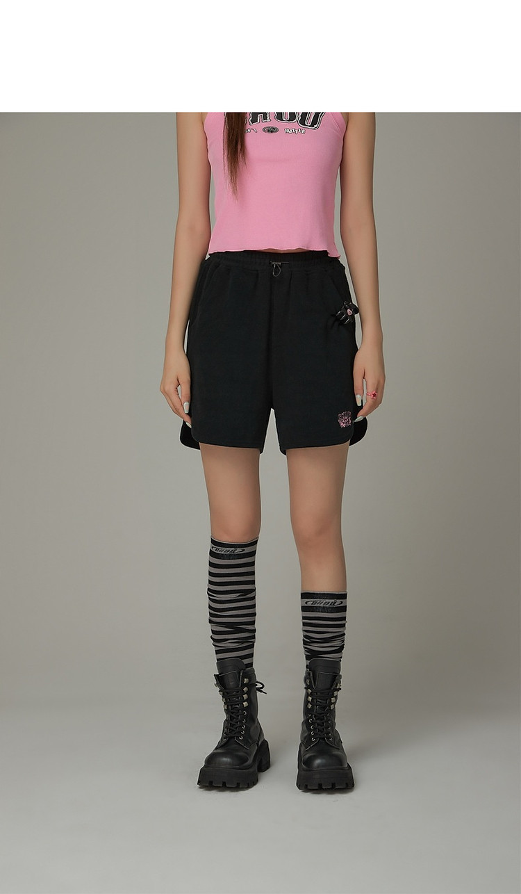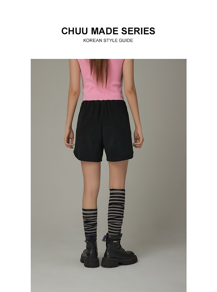 高腰休闲短裤女春秋简约抽绳百搭宽松显瘦运动裤子 375763
