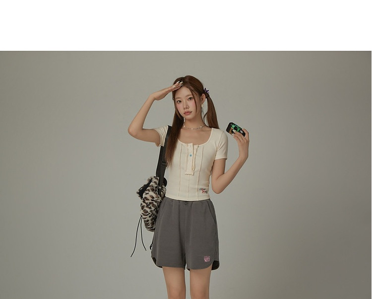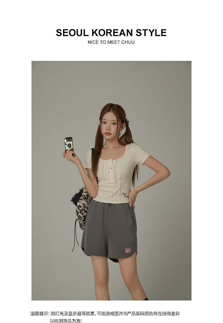 商品名称:高腰休闲短裤女春秋简约抽绳百搭宽松显瘦运动裤子 375763