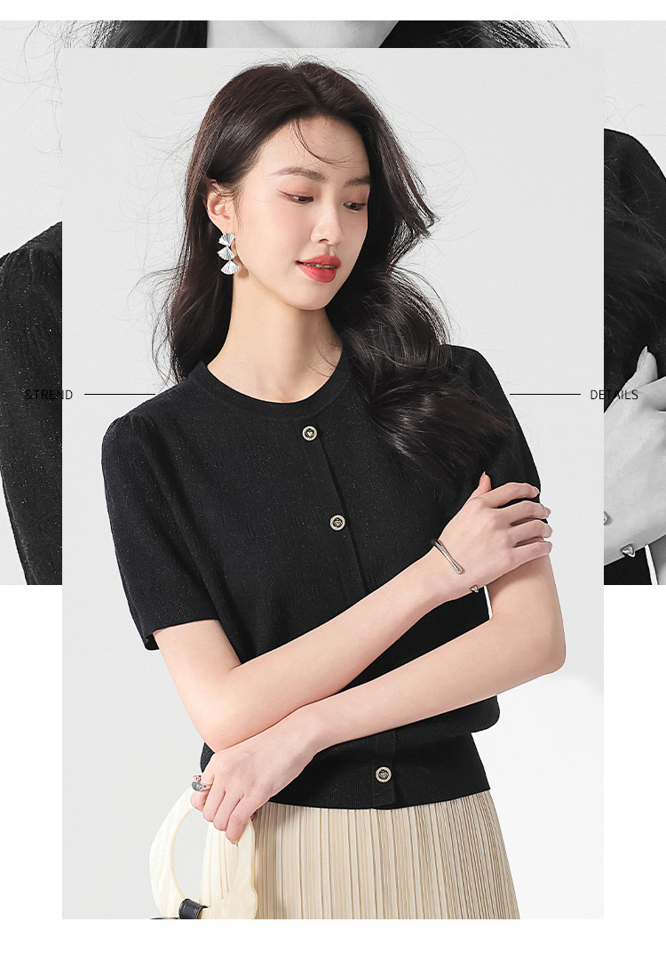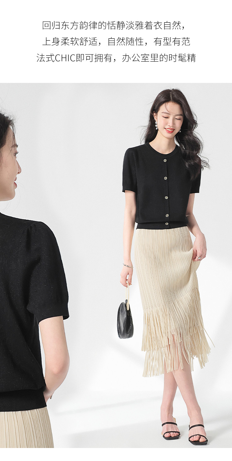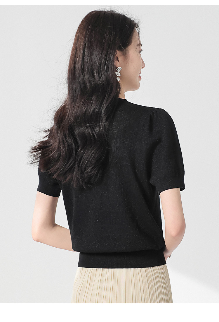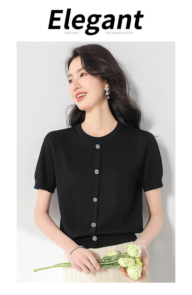 商品名称:夏款轻薄纯色提花含桑蚕丝针织衫女开衫打底假开衫短袖T恤 207635