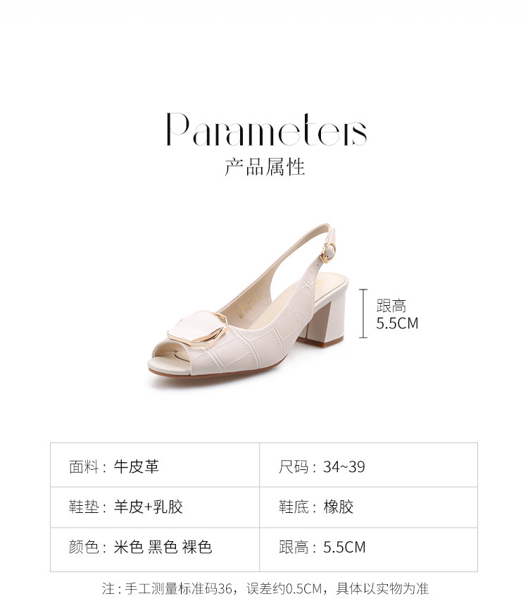 商品名称:【头层牛皮】气质百搭粗跟凉鞋圆头高级感女士凉鞋夏季女凉鞋女鞋 263616