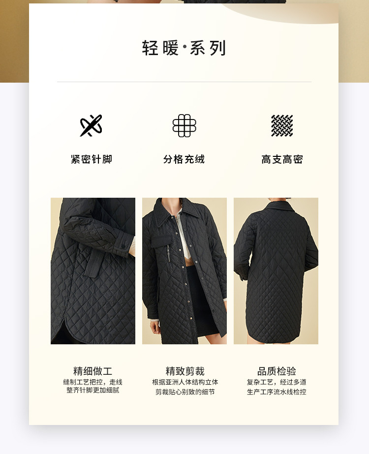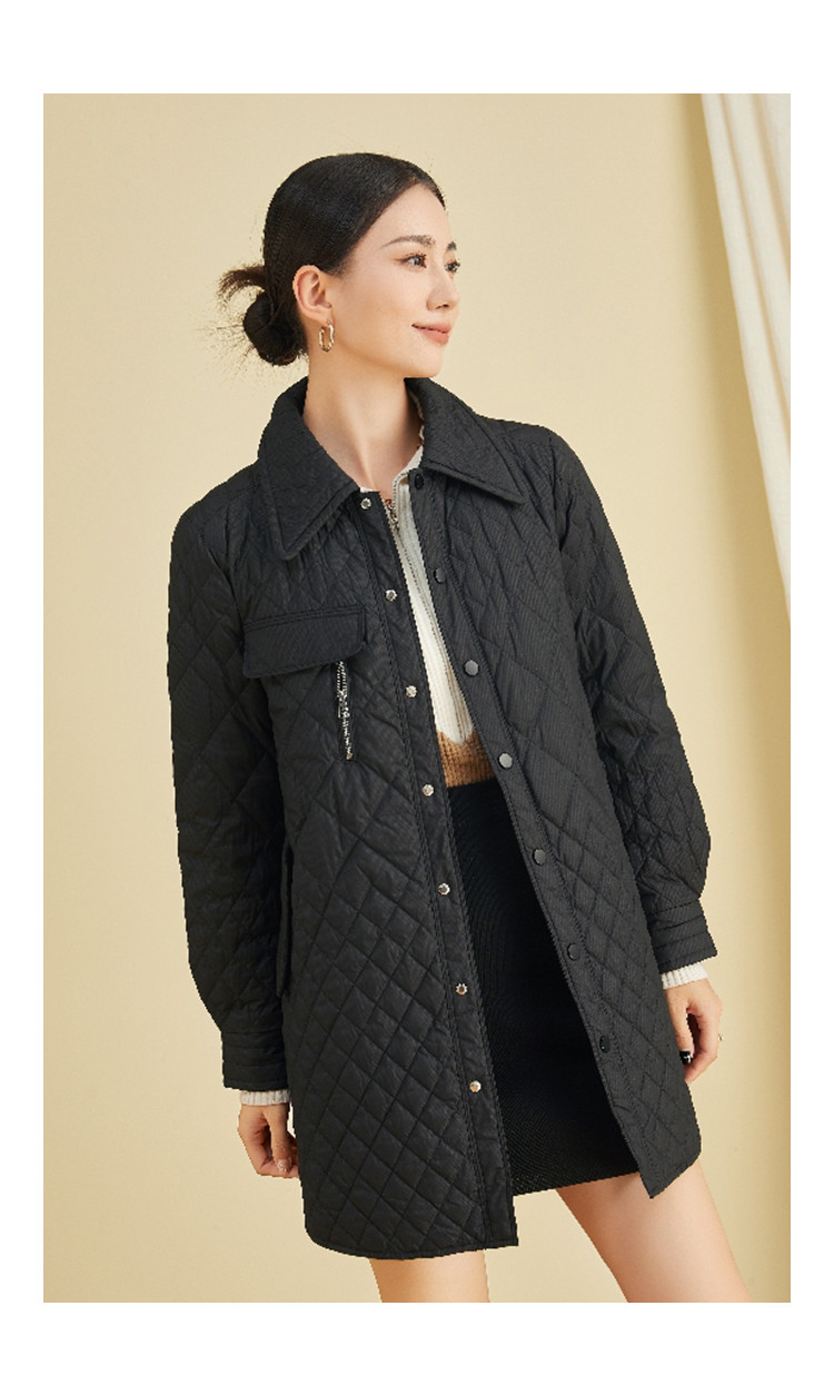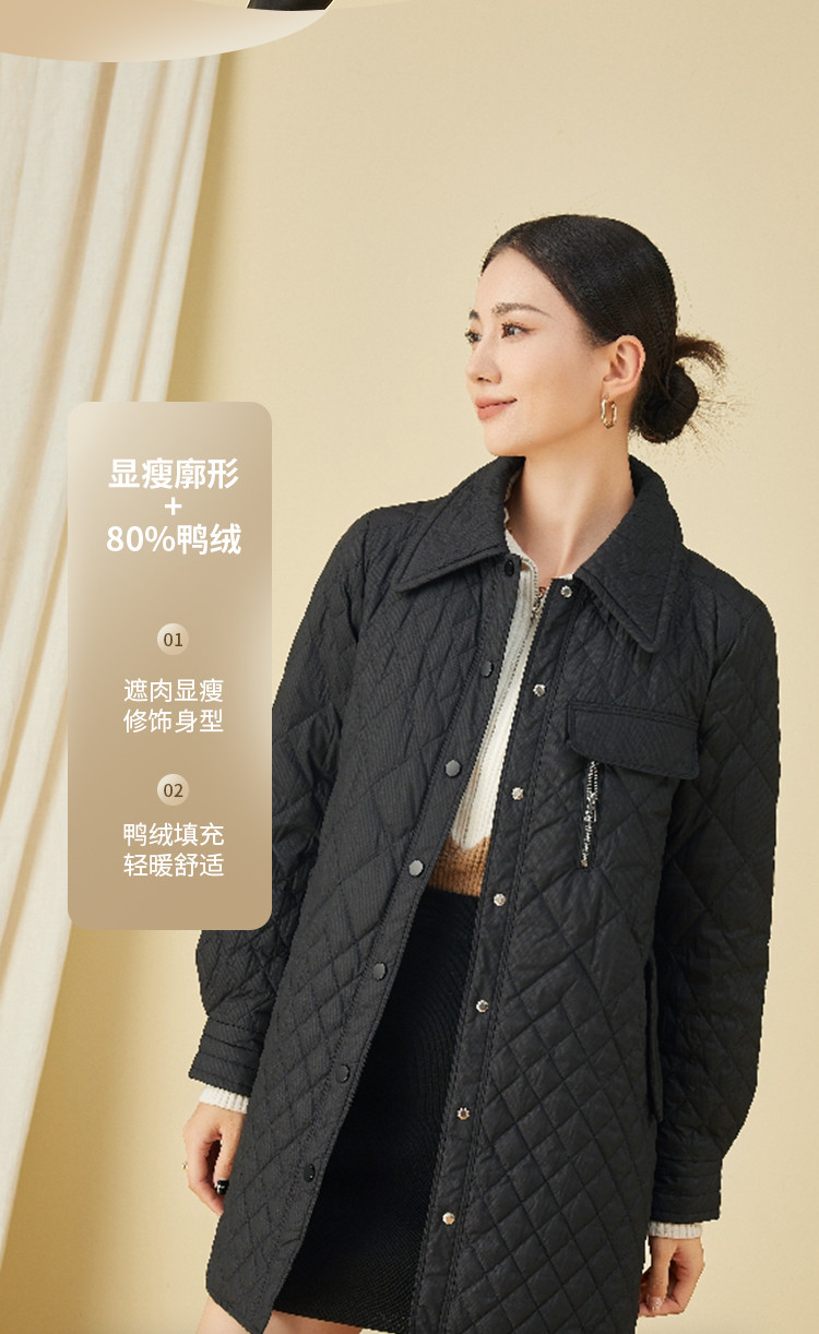商品名称:【纯色系】西装领轻薄单排扣女式中长款羽绒服 025759