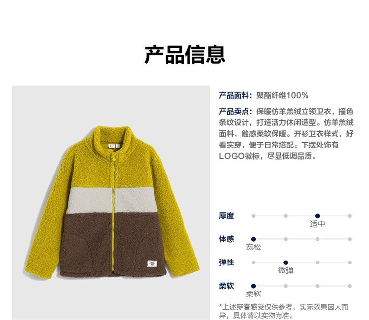 商品名称:Gap男童春秋LOGO仿羊羔绒保暖抓绒卫衣836807儿童装开衫 515610