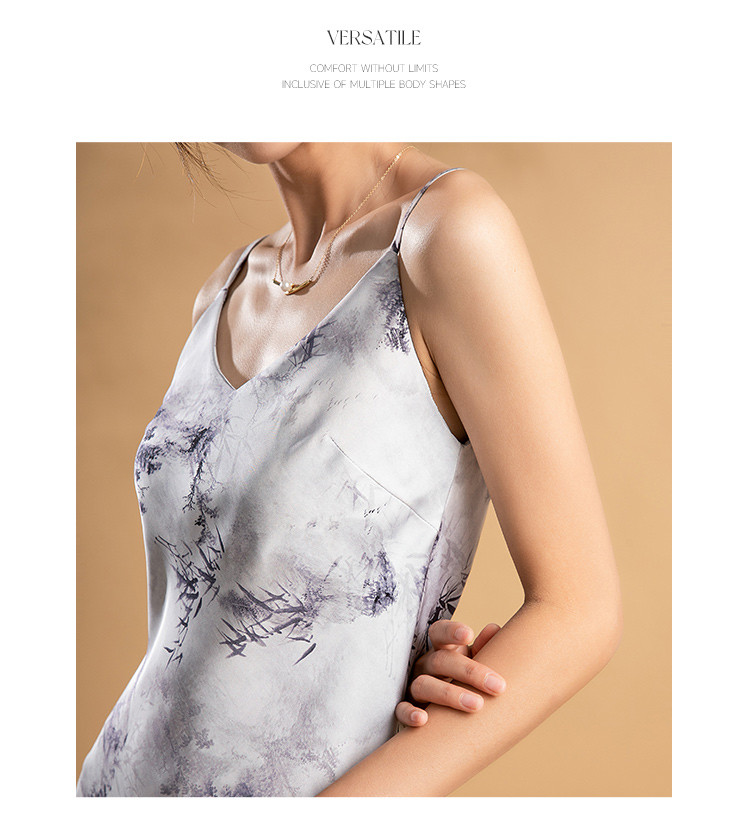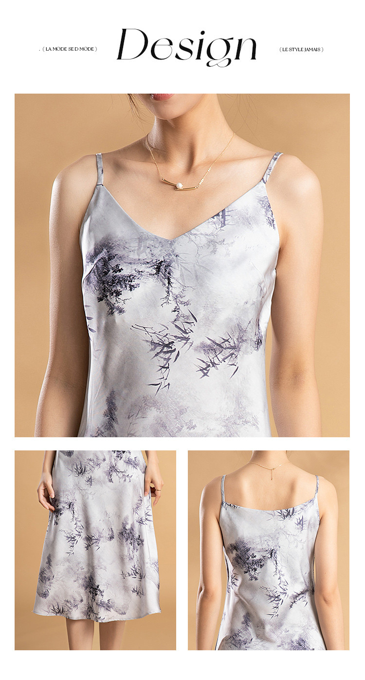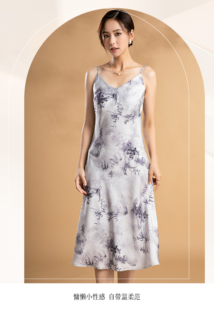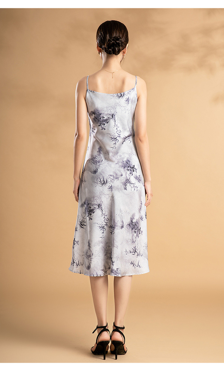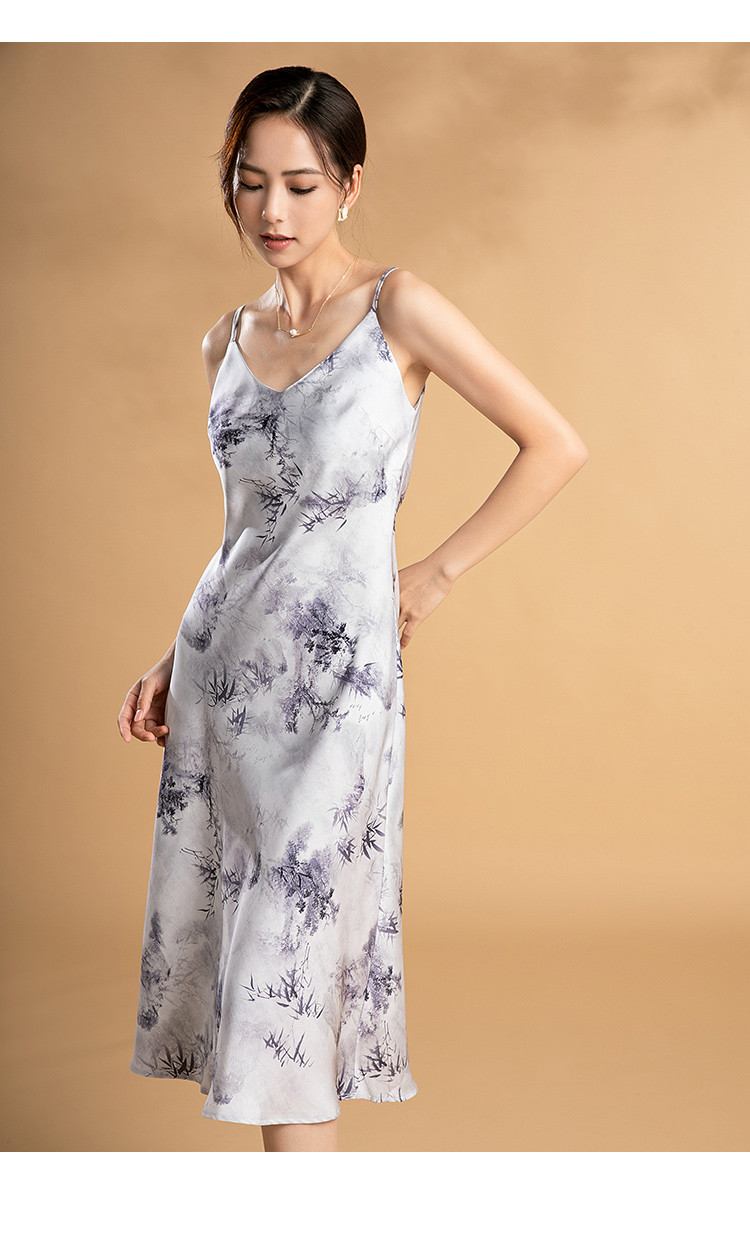 【竹子印花连衣裙】春季时尚单肩带轻薄中长款吊带裙 599199