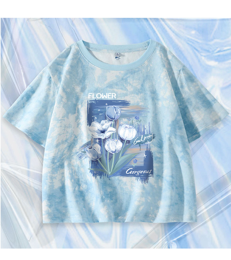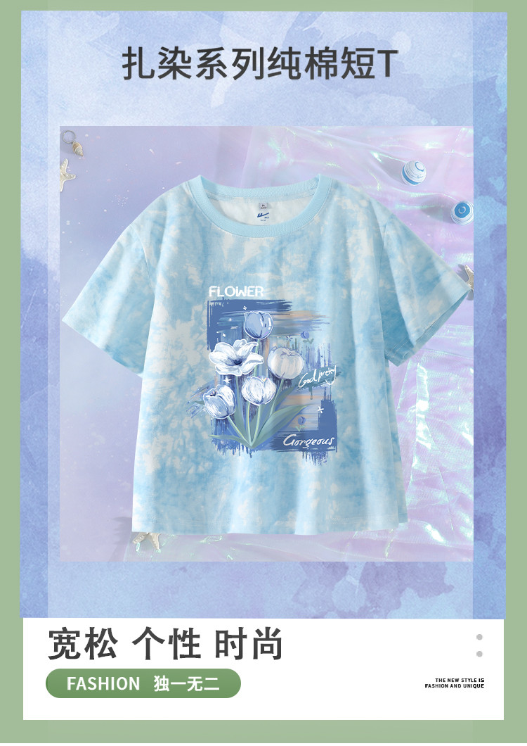 【女装】夏季扎染短款短袖纯棉女式T恤运动休闲小众上衣 269587