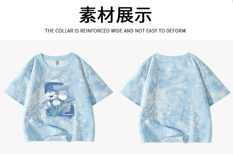 商品名称:【女装】夏季扎染短款短袖纯棉女式T恤运动休闲小众上衣 269587