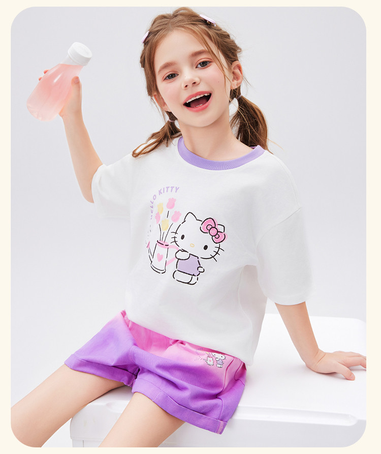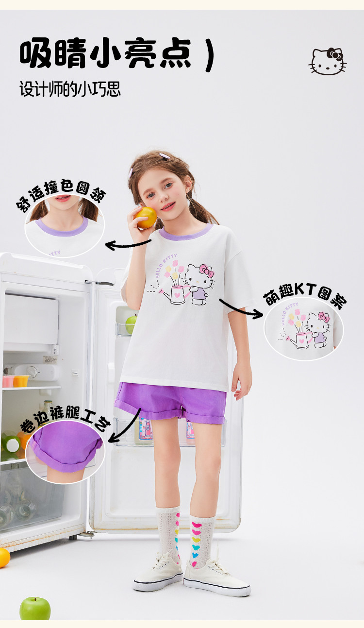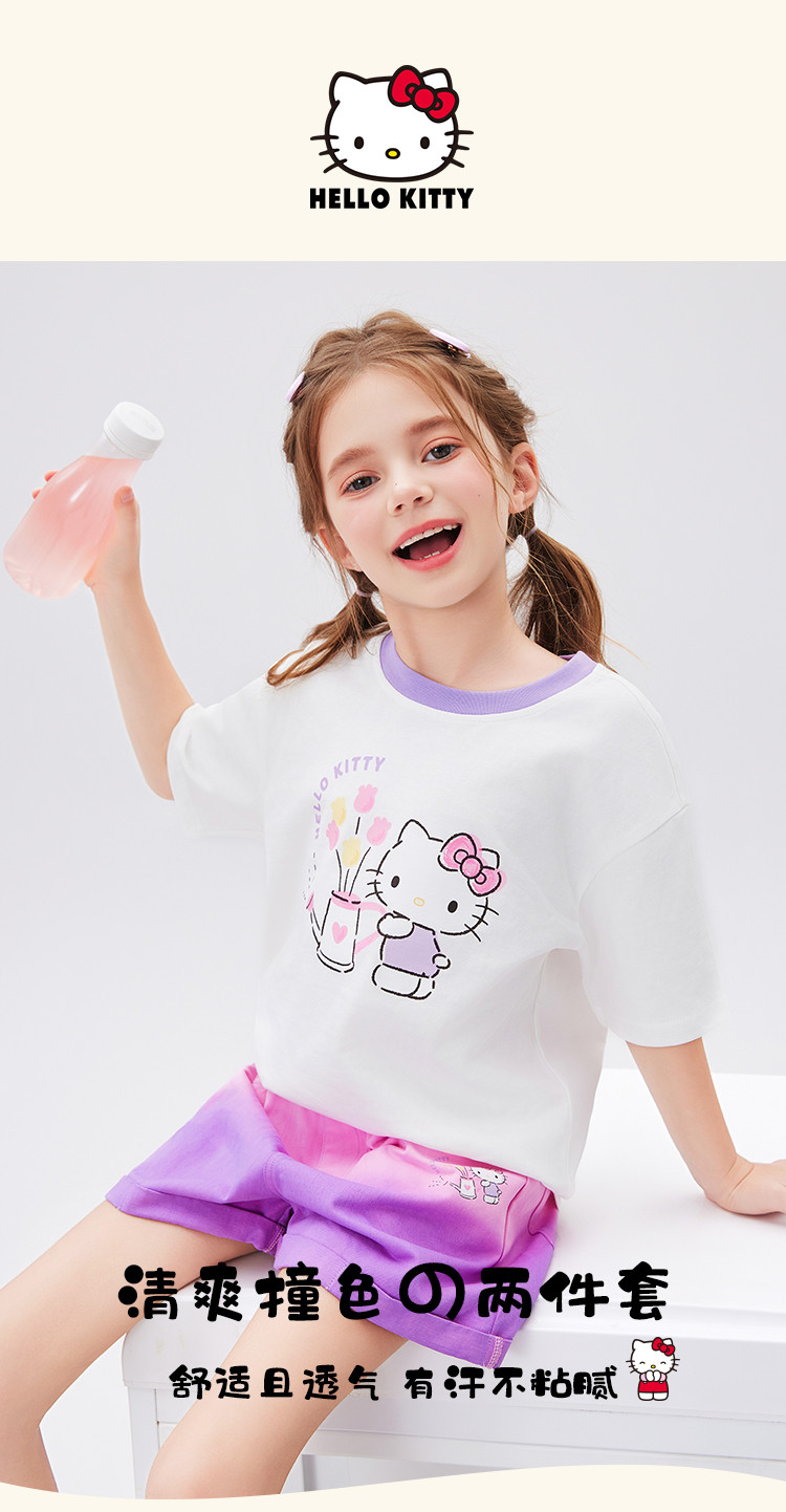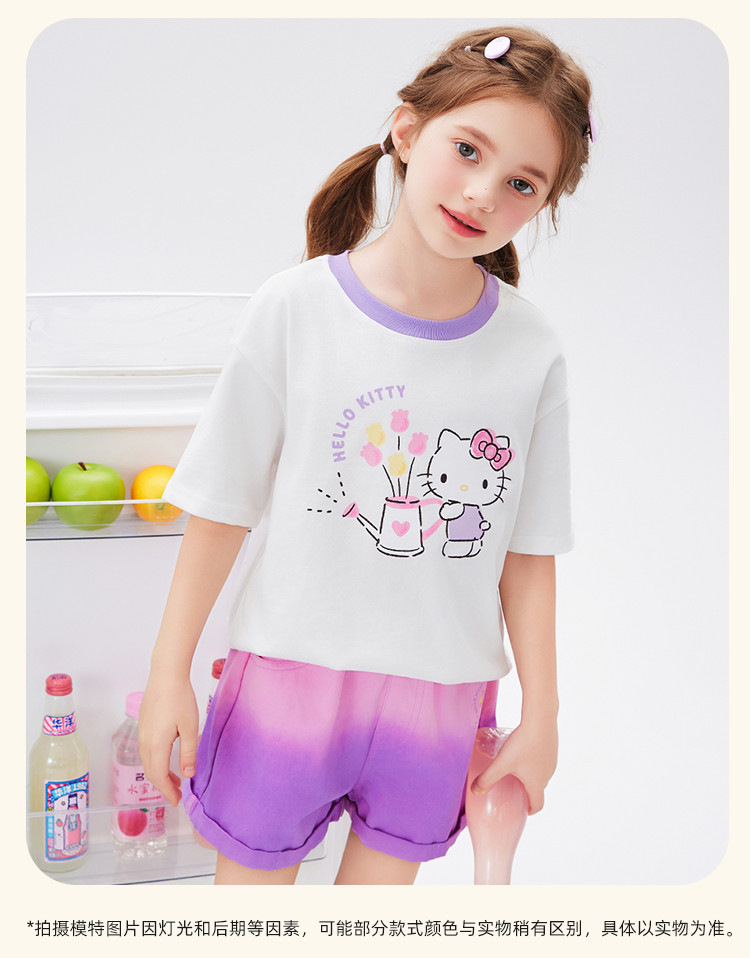 商品名称:女童夏季撞色卡通两件套2025款洋气清新运动中大童女宝宝套装 670814