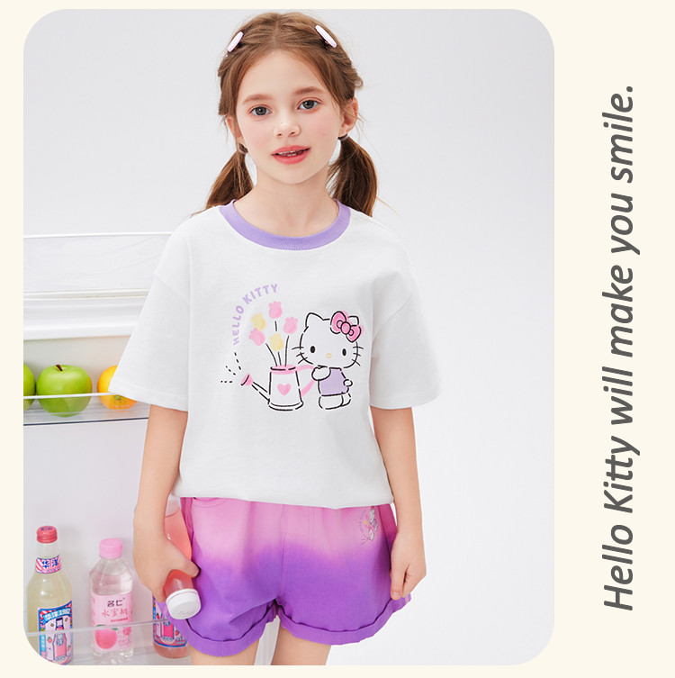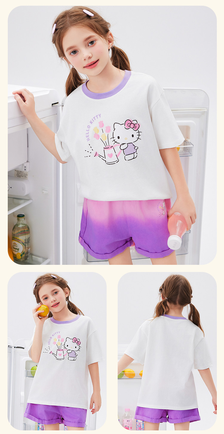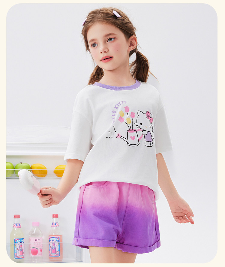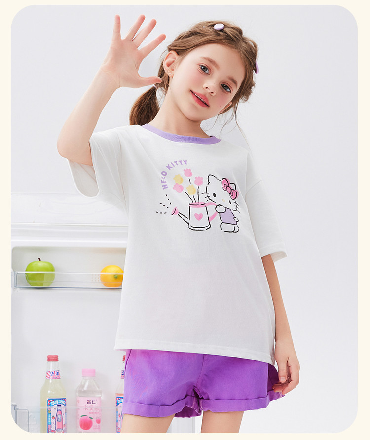 商品名称:女童夏季撞色卡通两件套2025款洋气清新运动中大童女宝宝套装 670814
