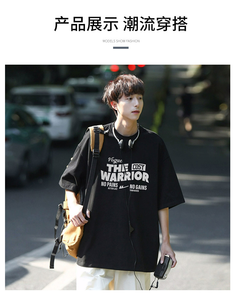 商品名称:夏季纯棉短袖T恤男休闲潮牌打底衫圆领宽松半袖全棉体恤 627603