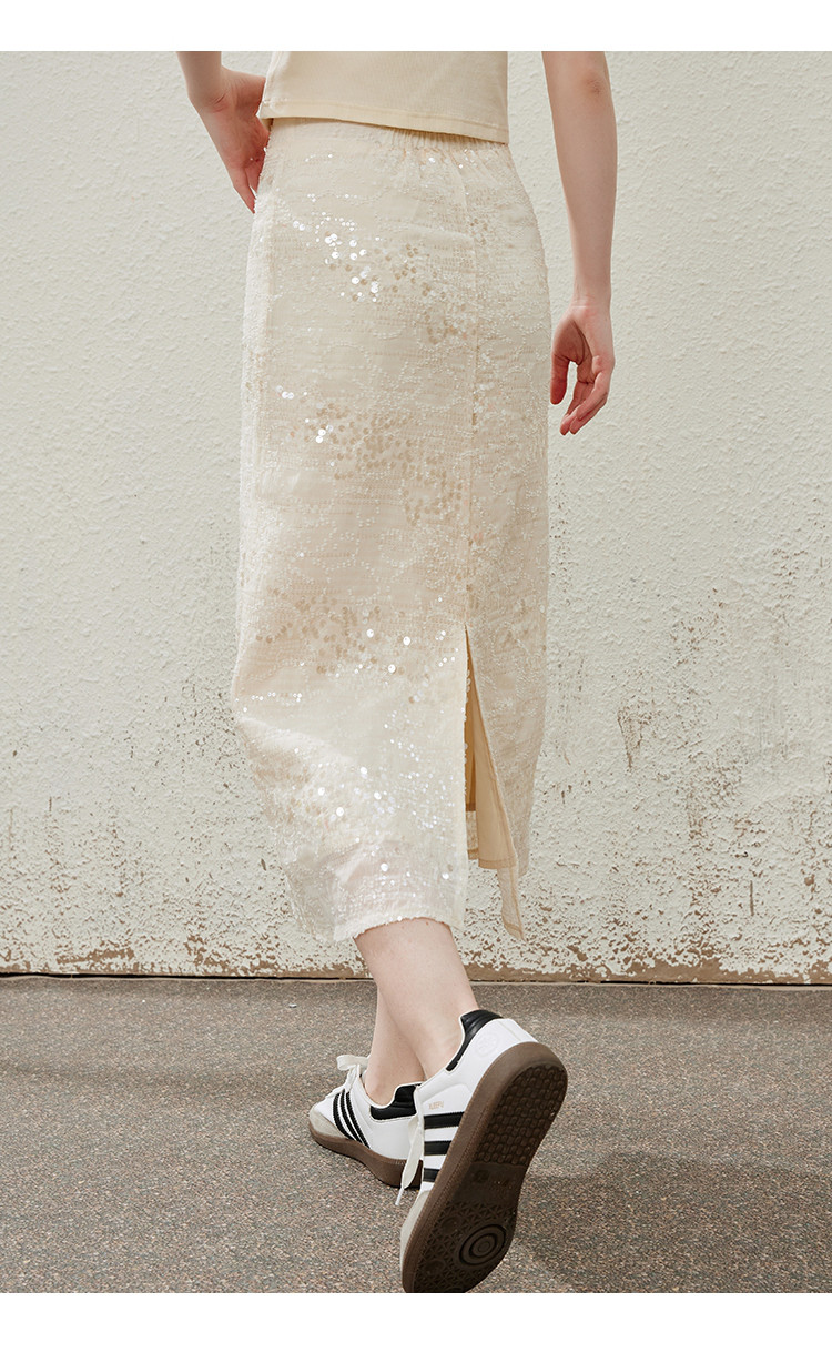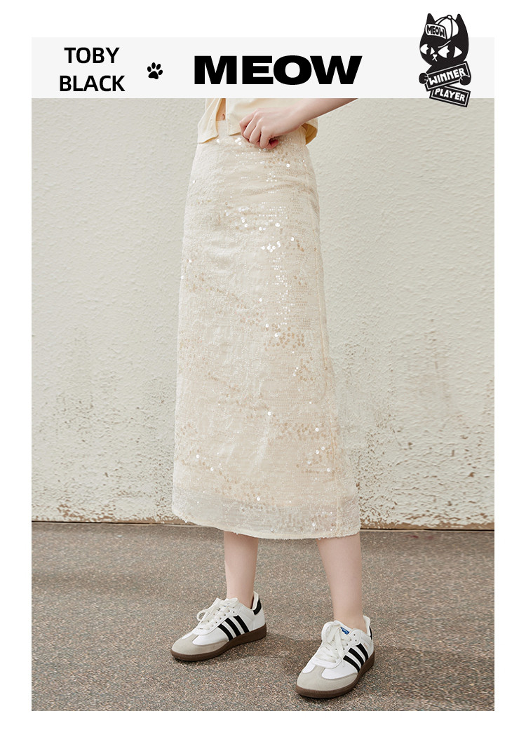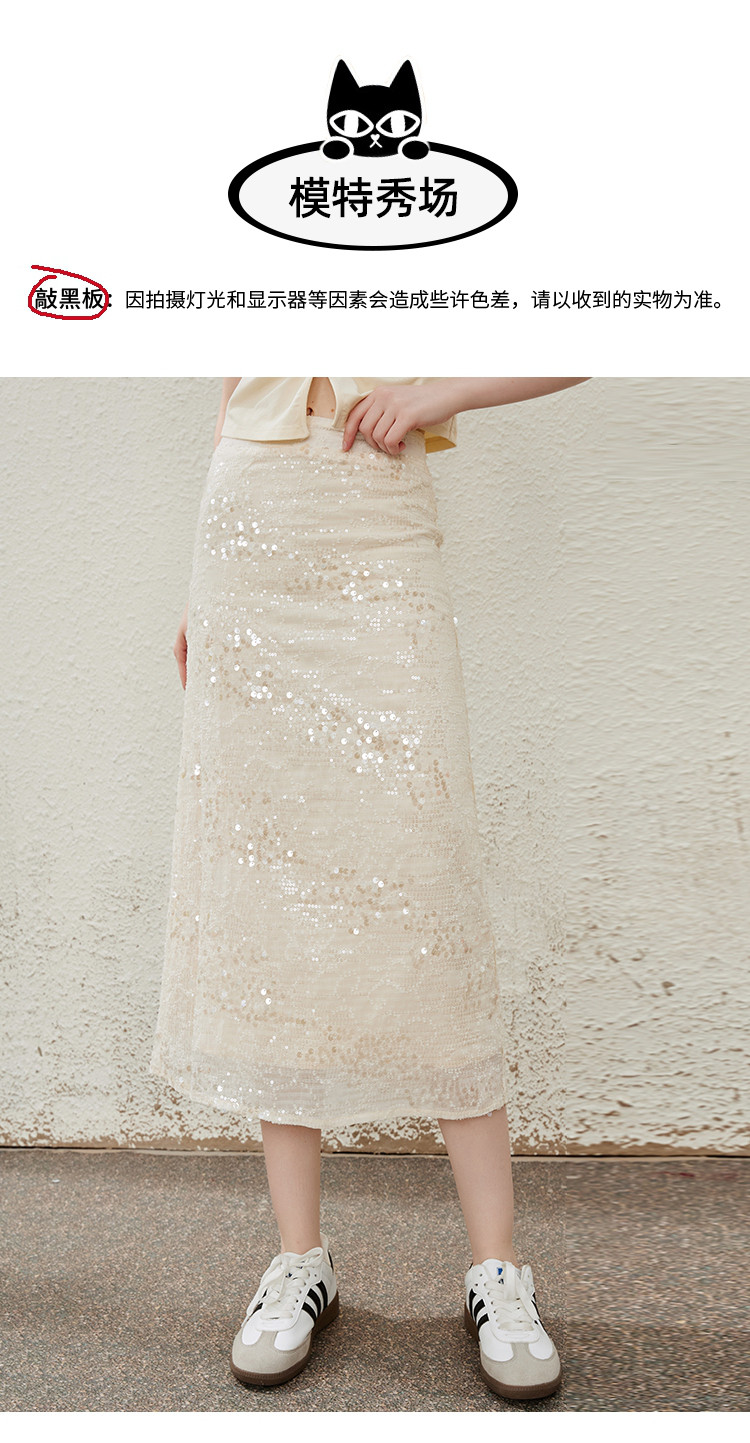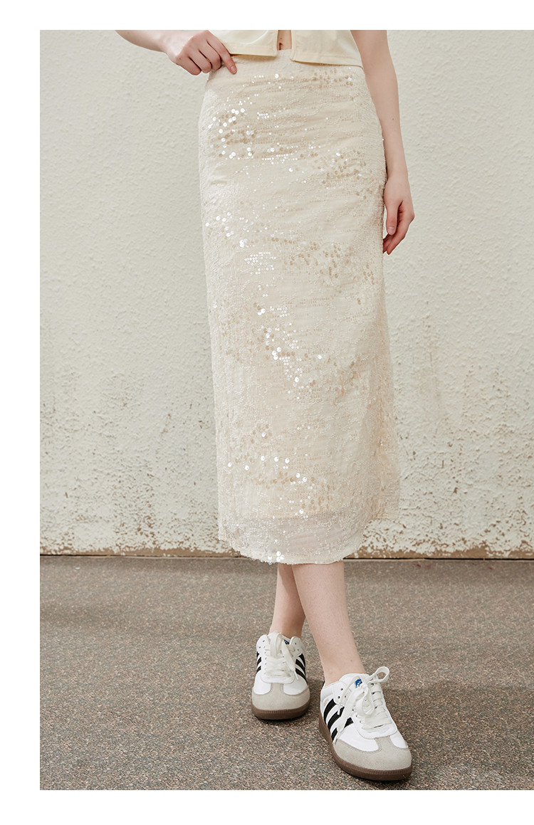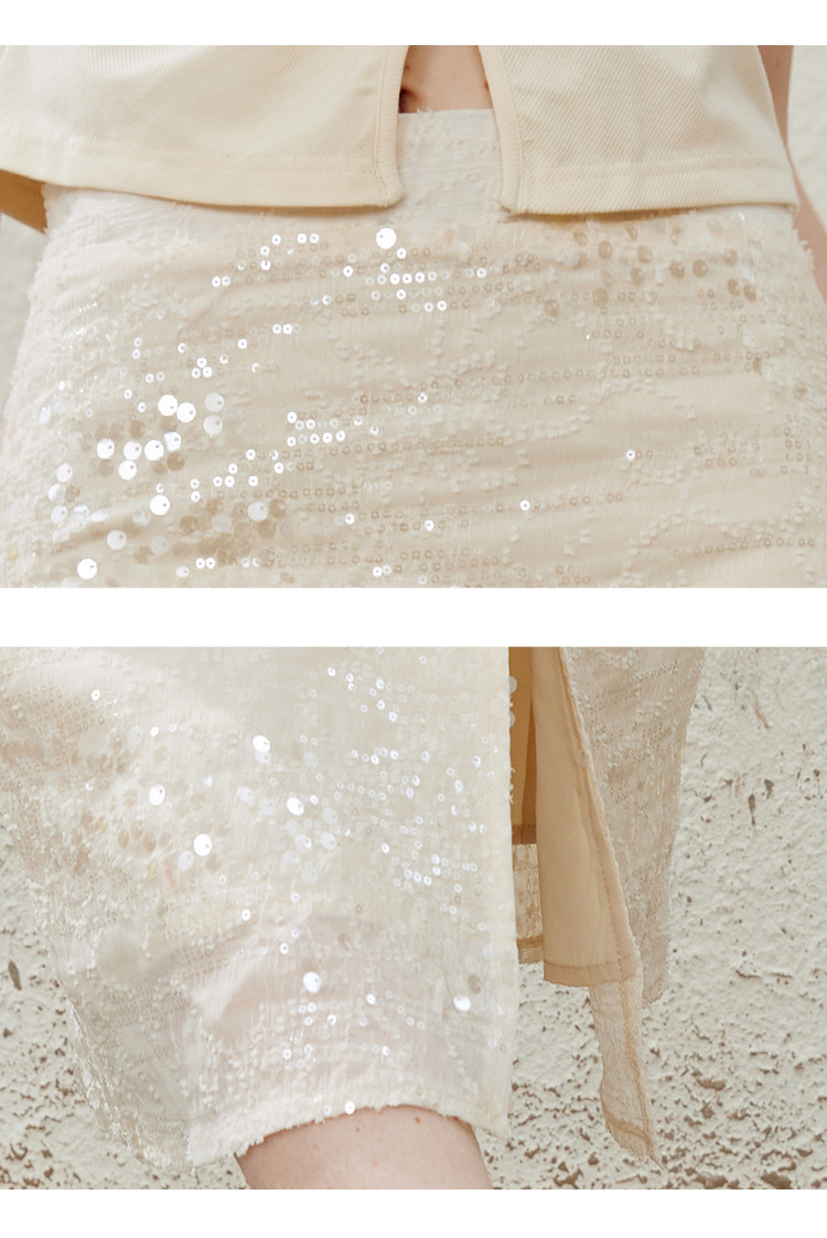 商品名称:流金岁月高级细闪亮片中长款开叉半身裙夏季气质半截裙 475165