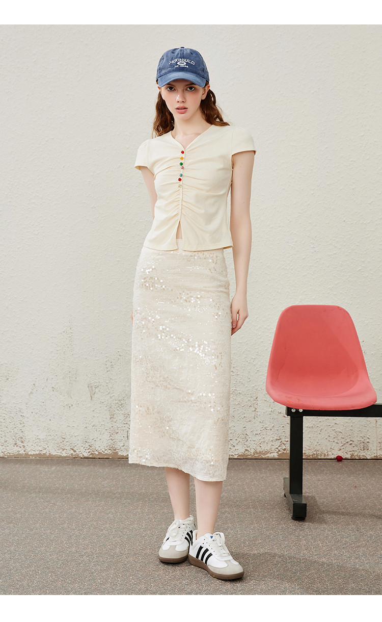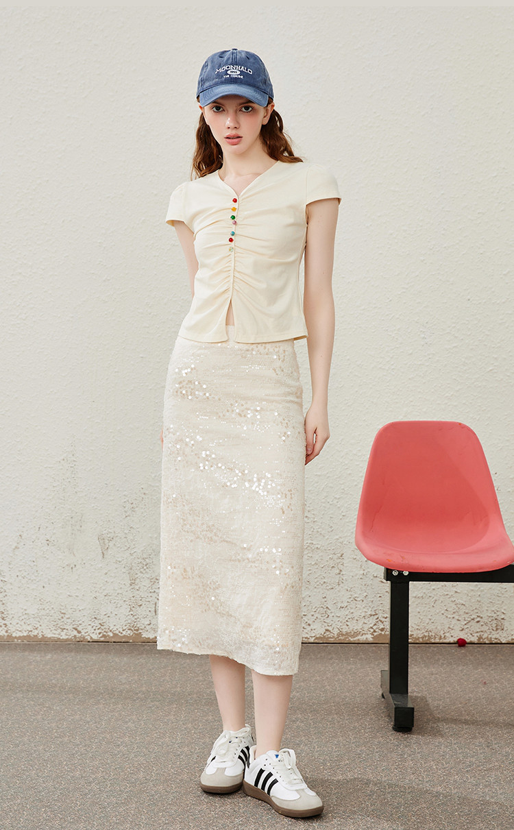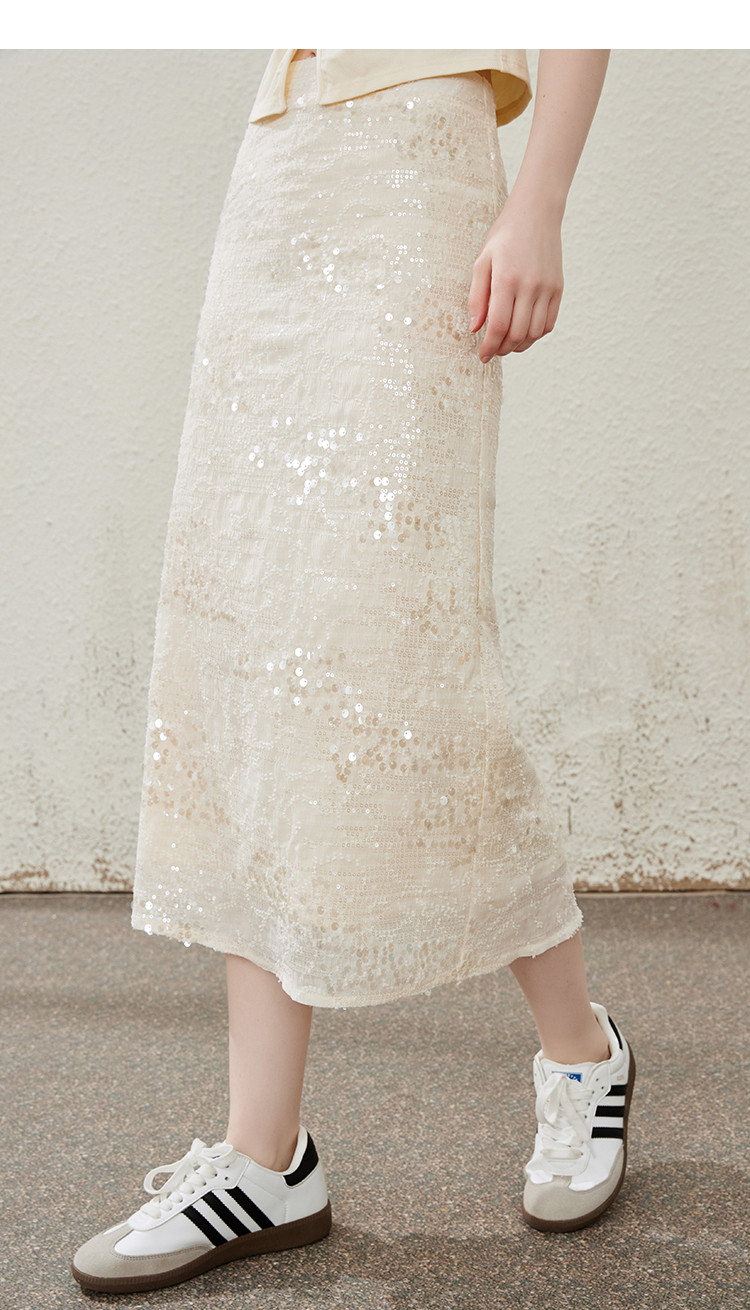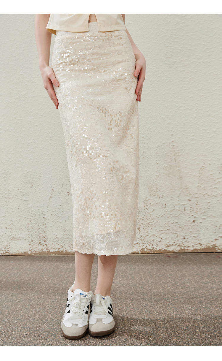 商品名称:流金岁月高级细闪亮片中长款开叉半身裙夏季气质半截裙 475165