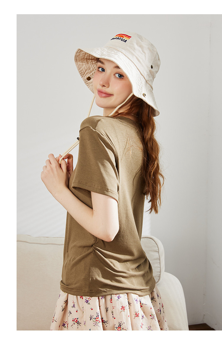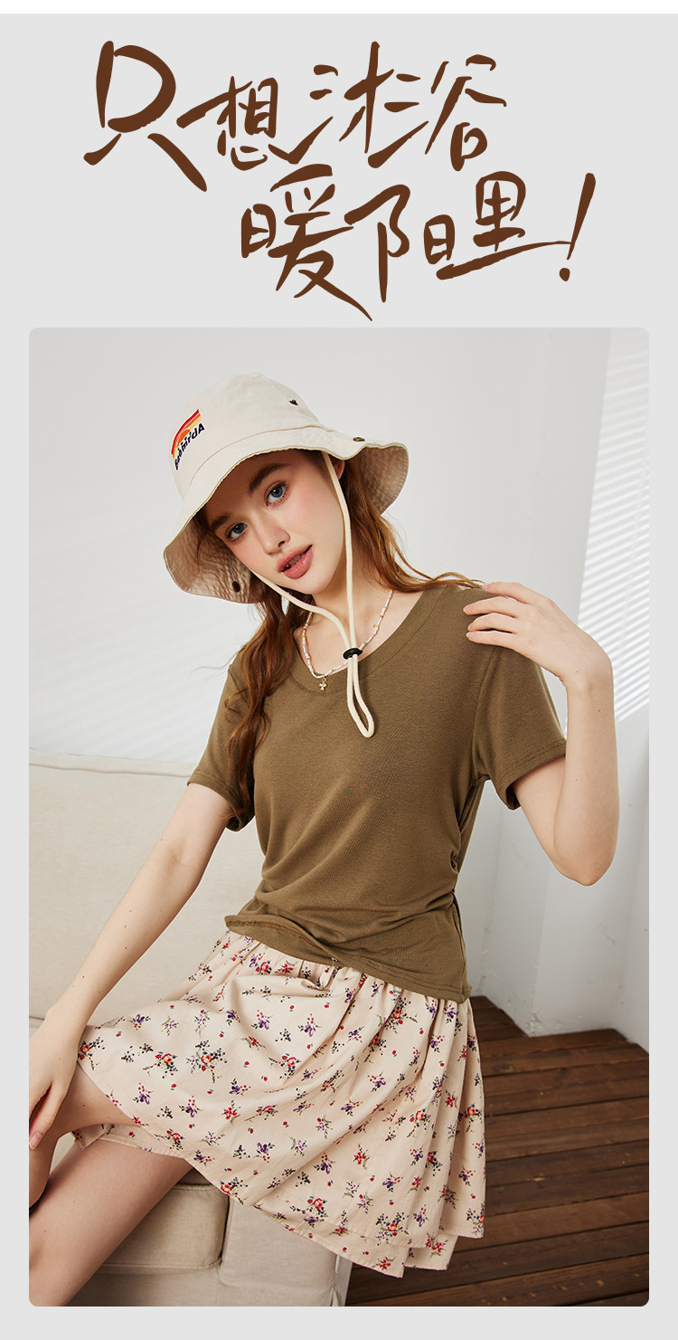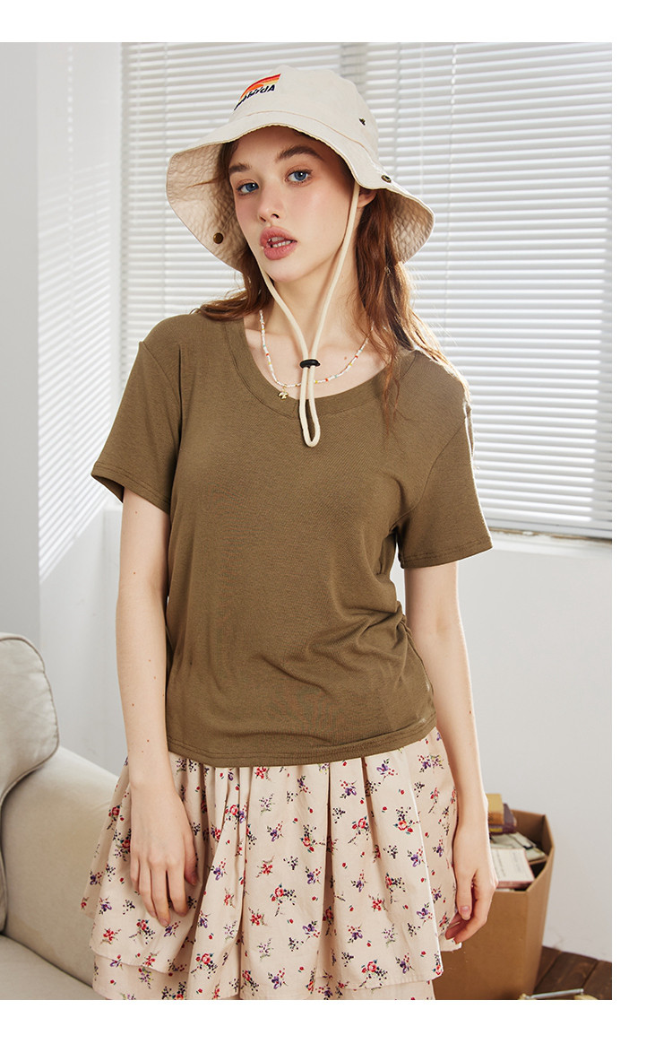 商品名称:【多色可选】夏季纯色简约设计V领短袖上衣女式T恤 253021