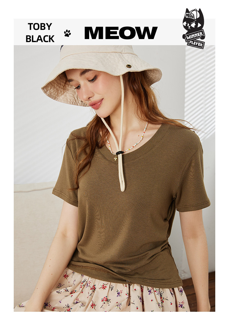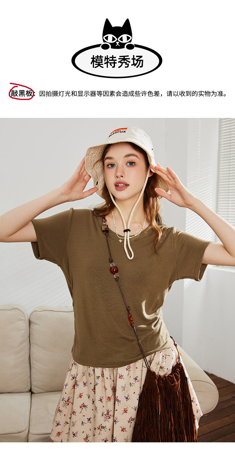 【多色可选】夏季纯色简约设计V领短袖上衣女式T恤 253021
