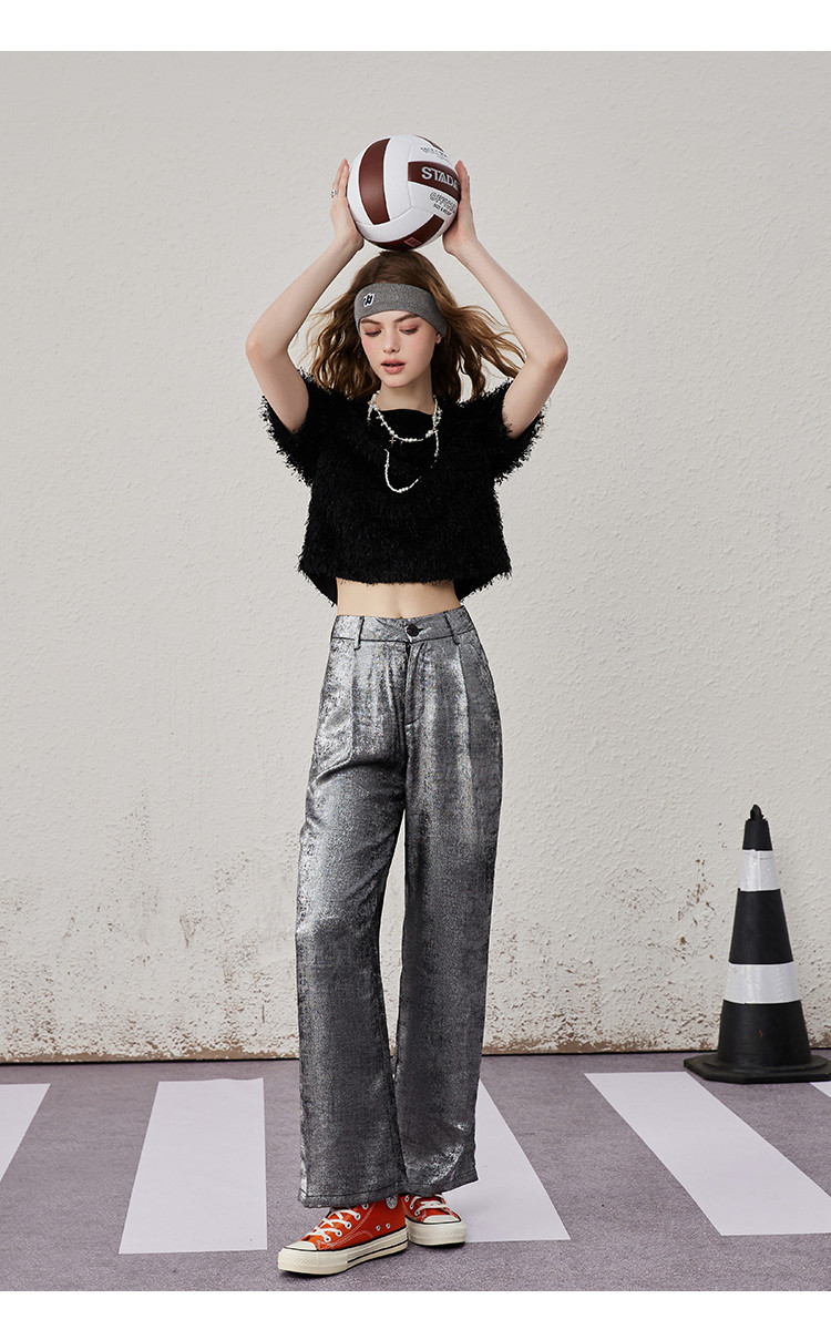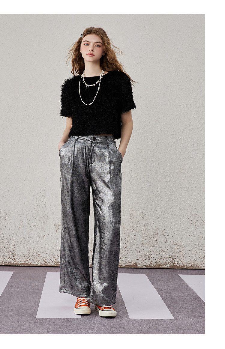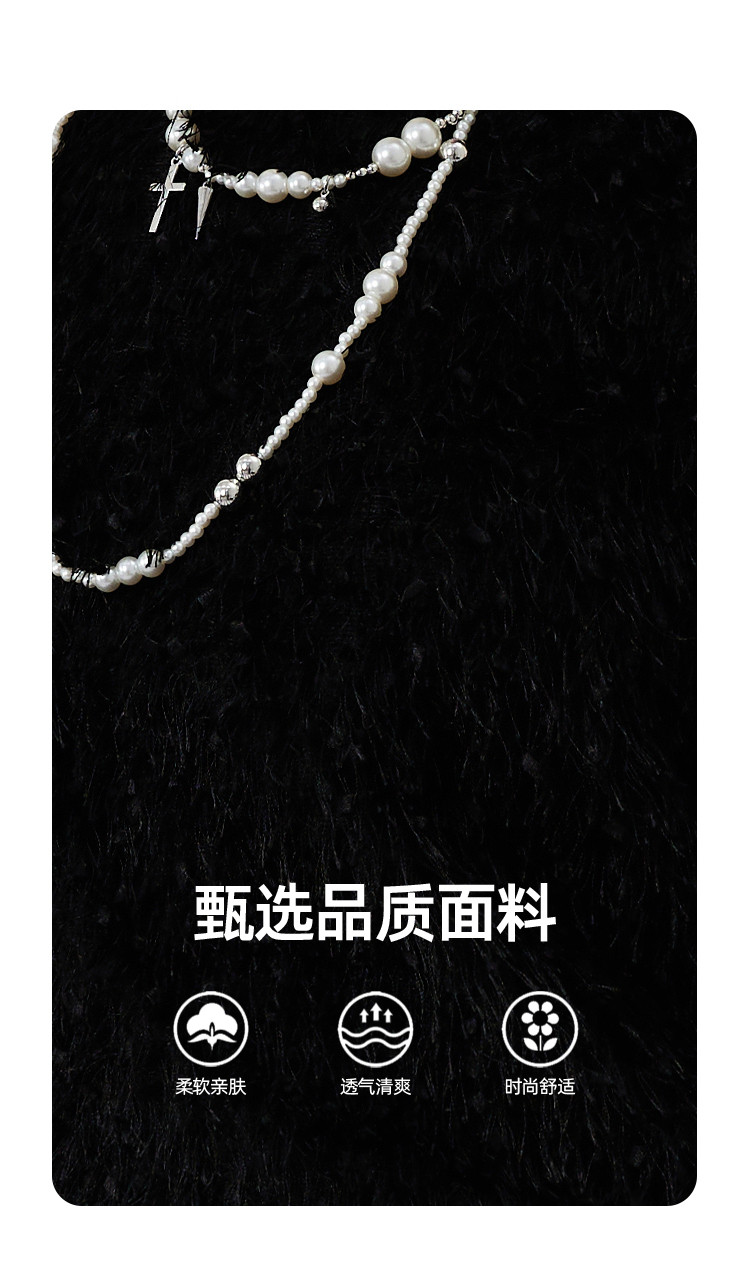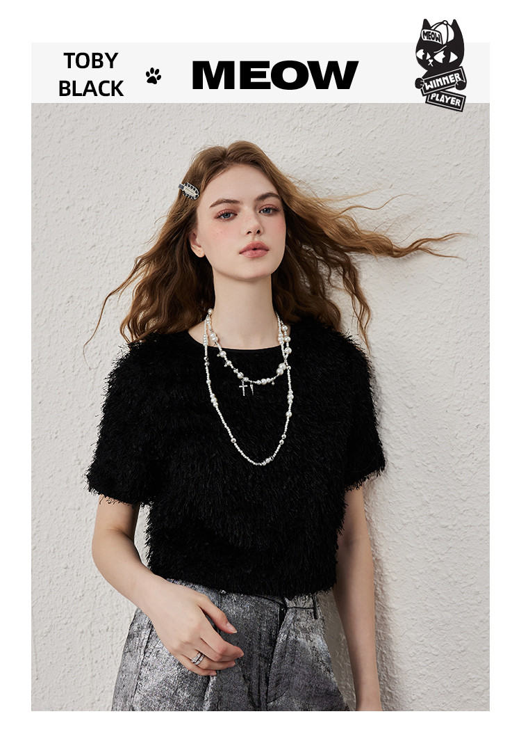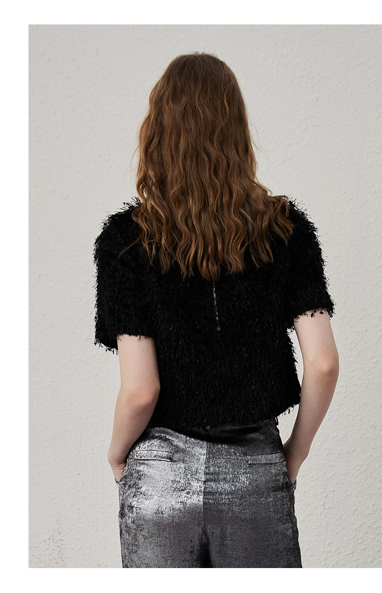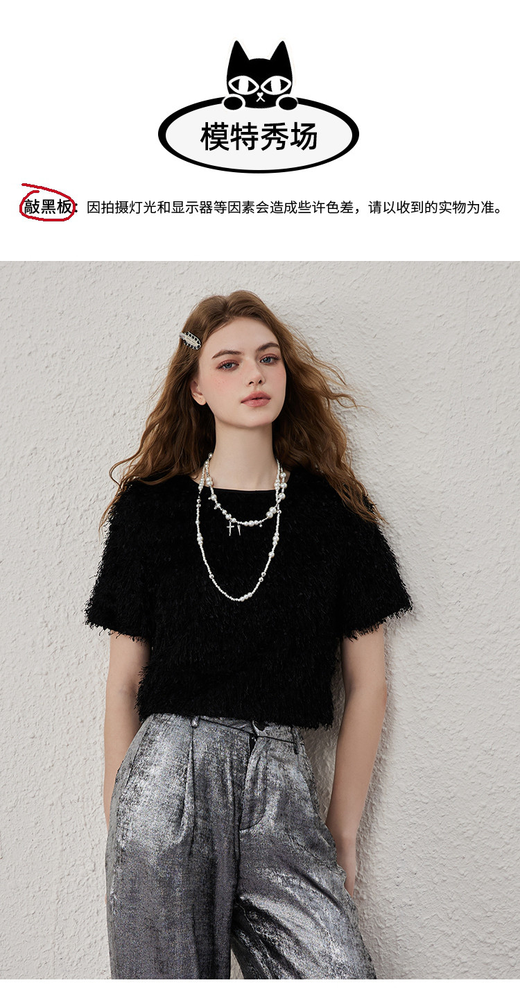 商品名称:个性简约毛毛面料品质感女式T恤夏季休闲气质短袖上衣 417821