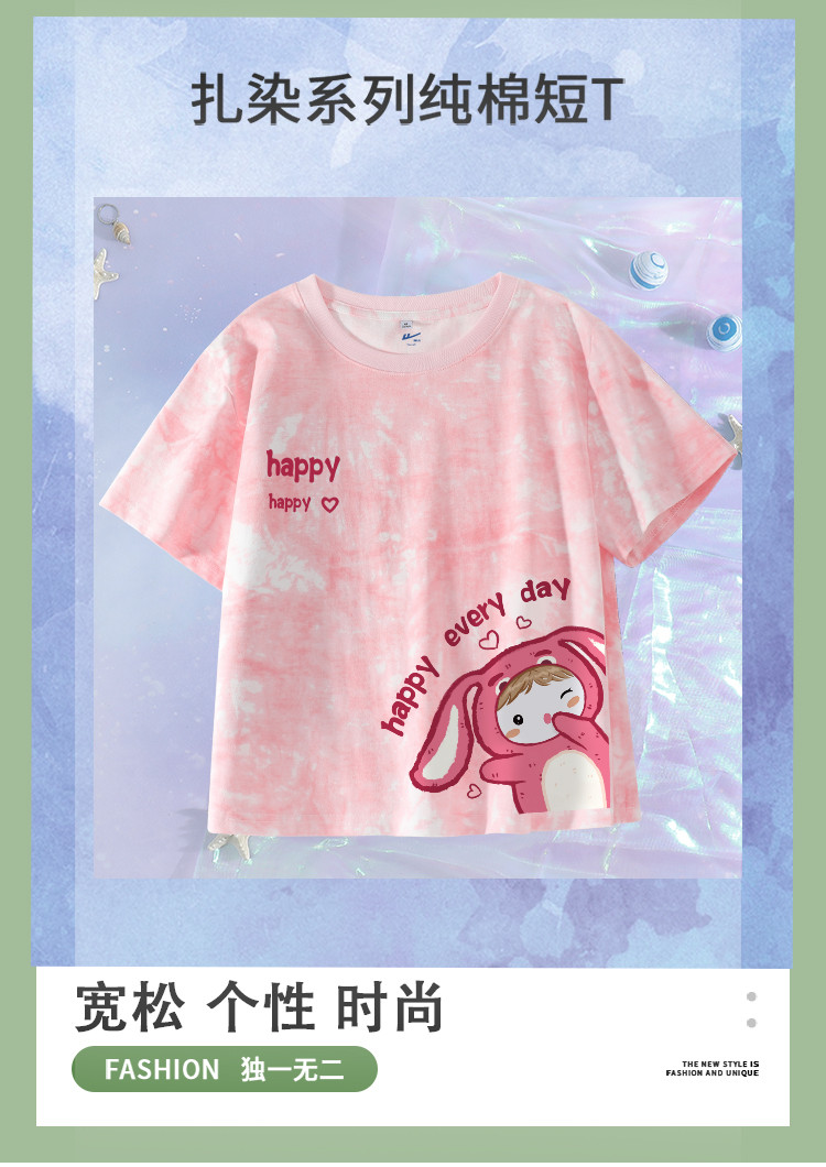 商品名称:【女装】夏季扎染短款短袖纯棉女式T恤运动休闲小众上衣 129619