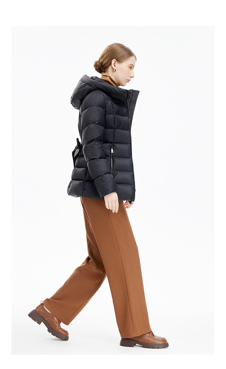 【鹅绒】百搭极简淑女风修身显瘦加厚连帽常规羽绒服 689759