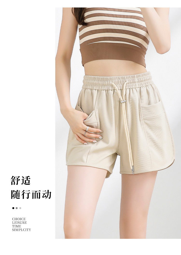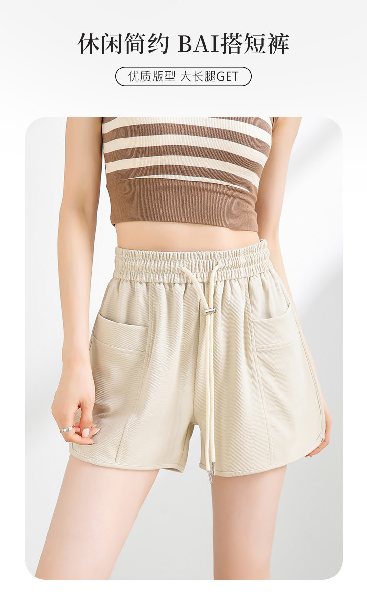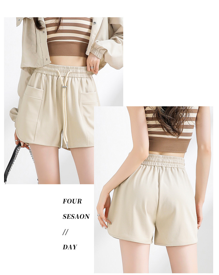 商品名称:【高级斜纹肌理感短裤】小众口袋设计松紧高腰质感运动裤热裤女款 128321