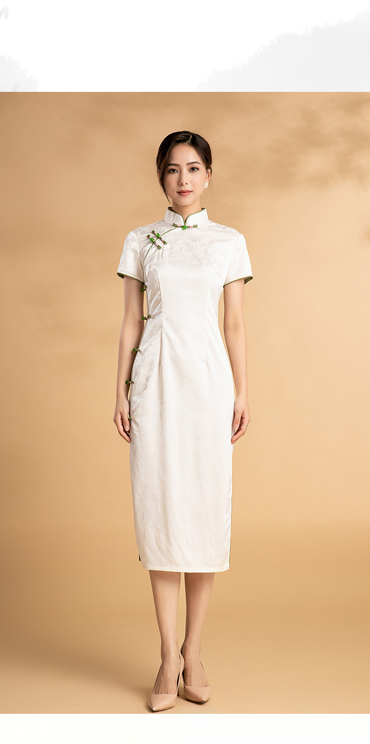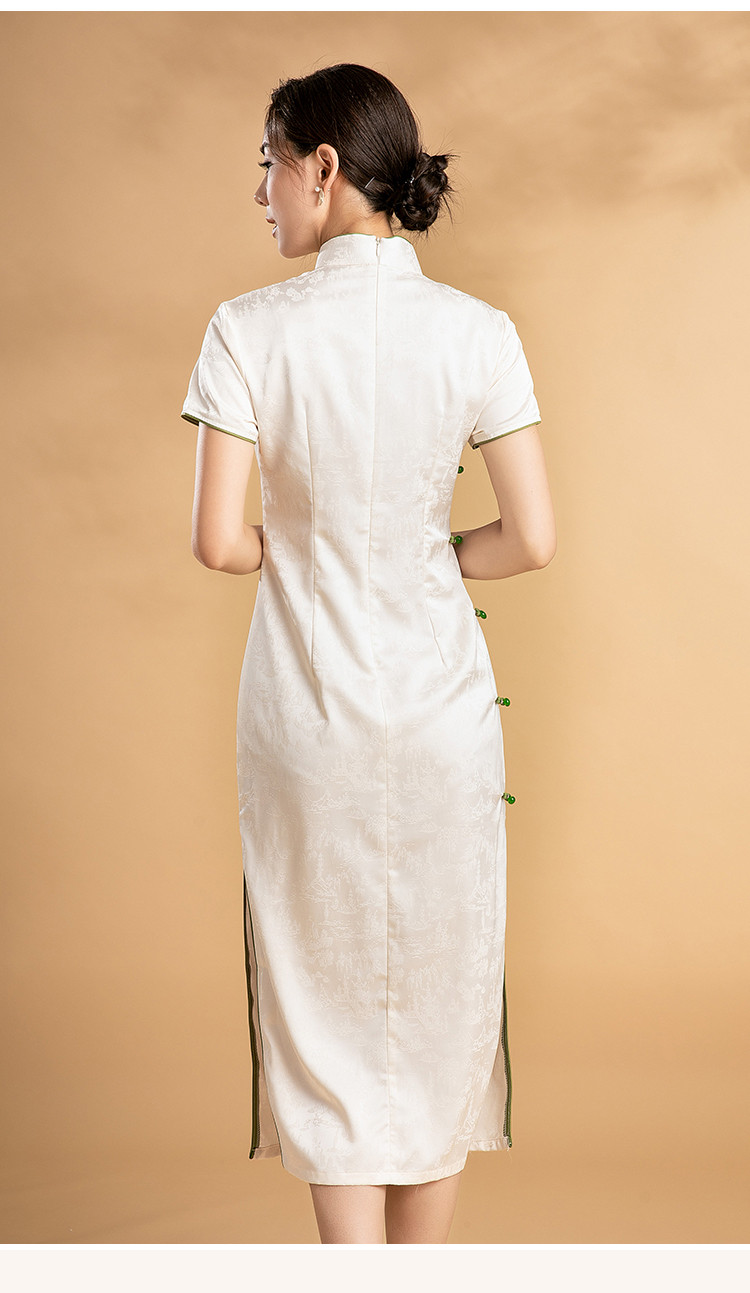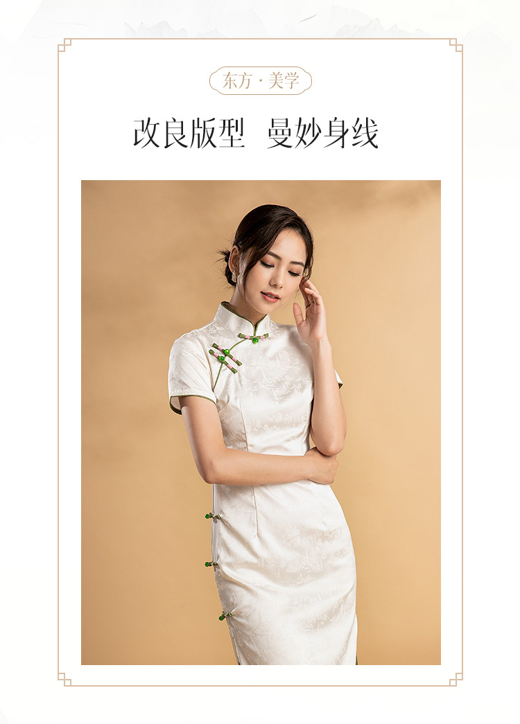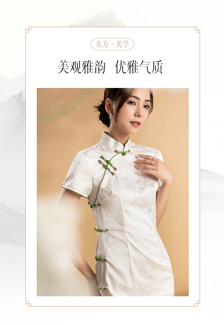商品名称:气质缎面印花旗袍裙女夏季新中式优雅知性改良旗袍 656543