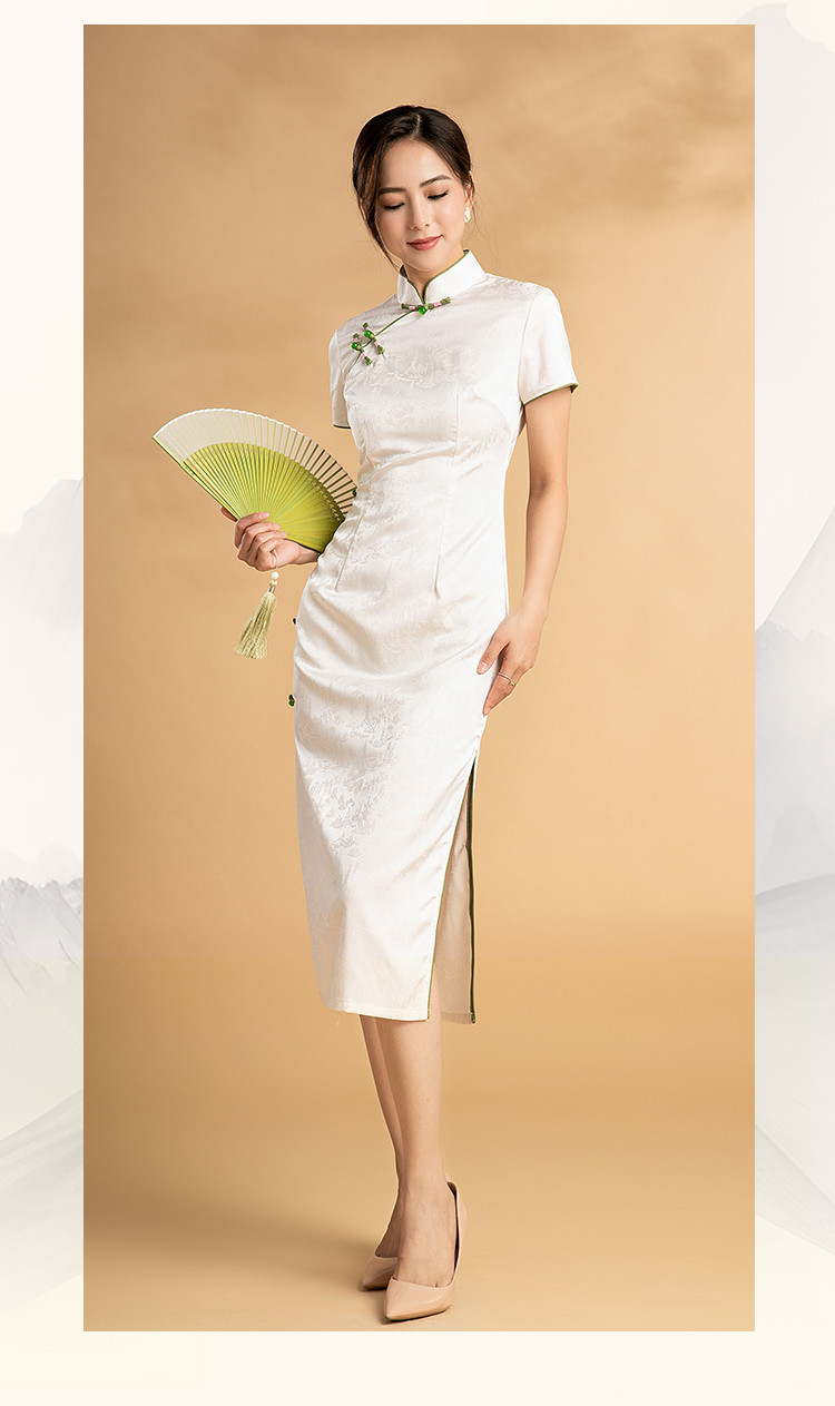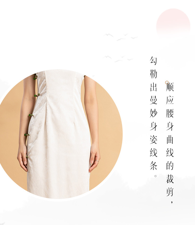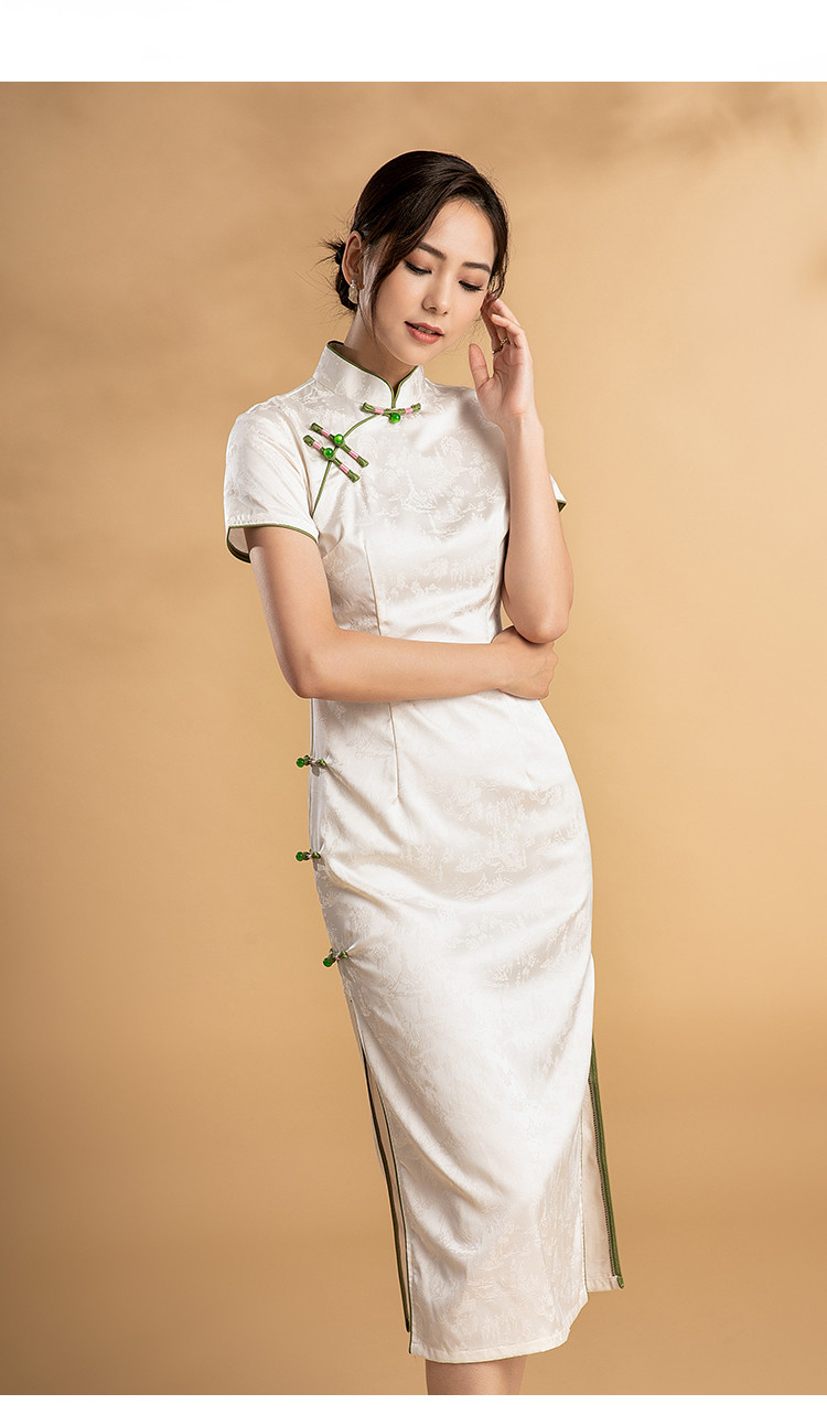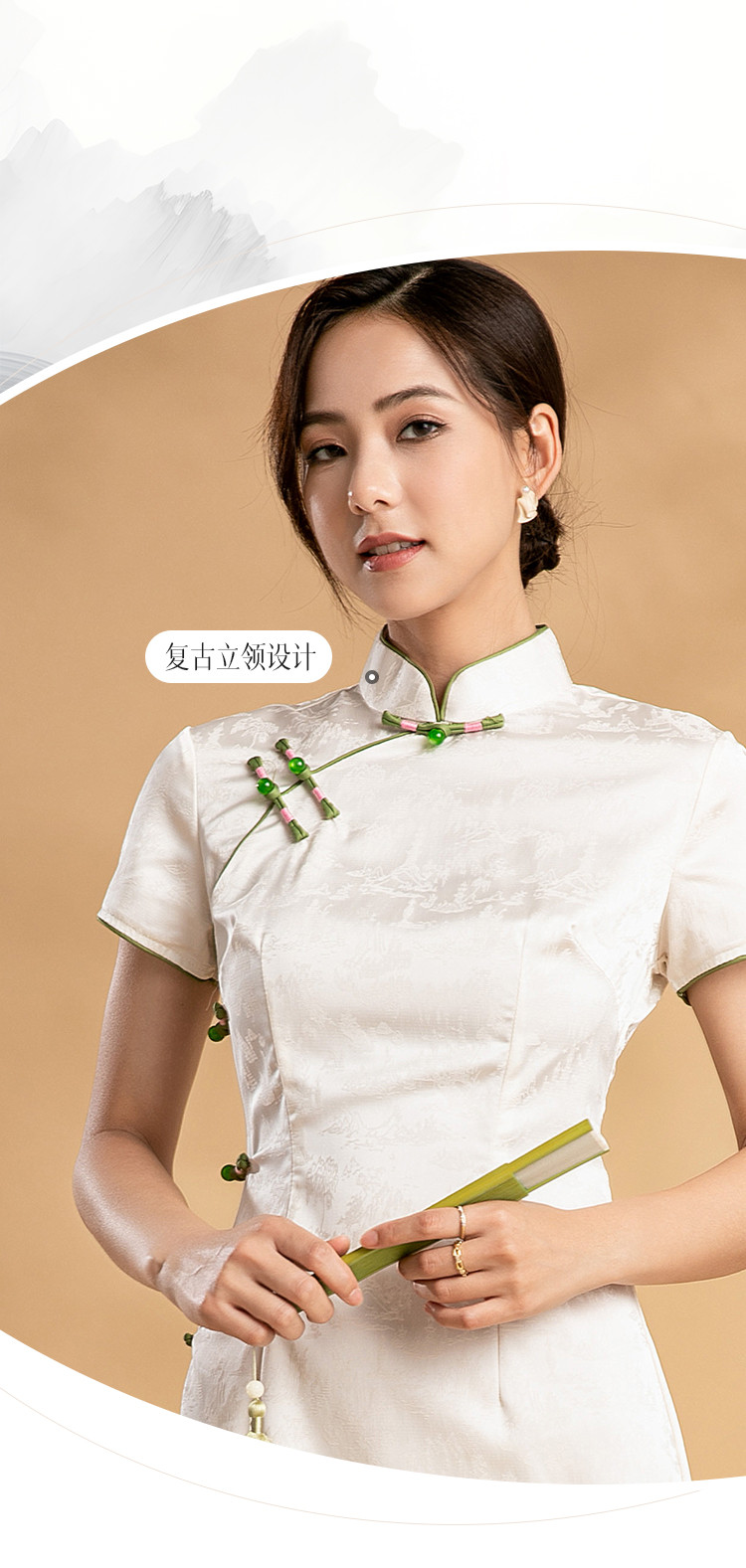 商品名称:气质缎面印花旗袍裙女夏季新中式优雅知性改良旗袍 656543