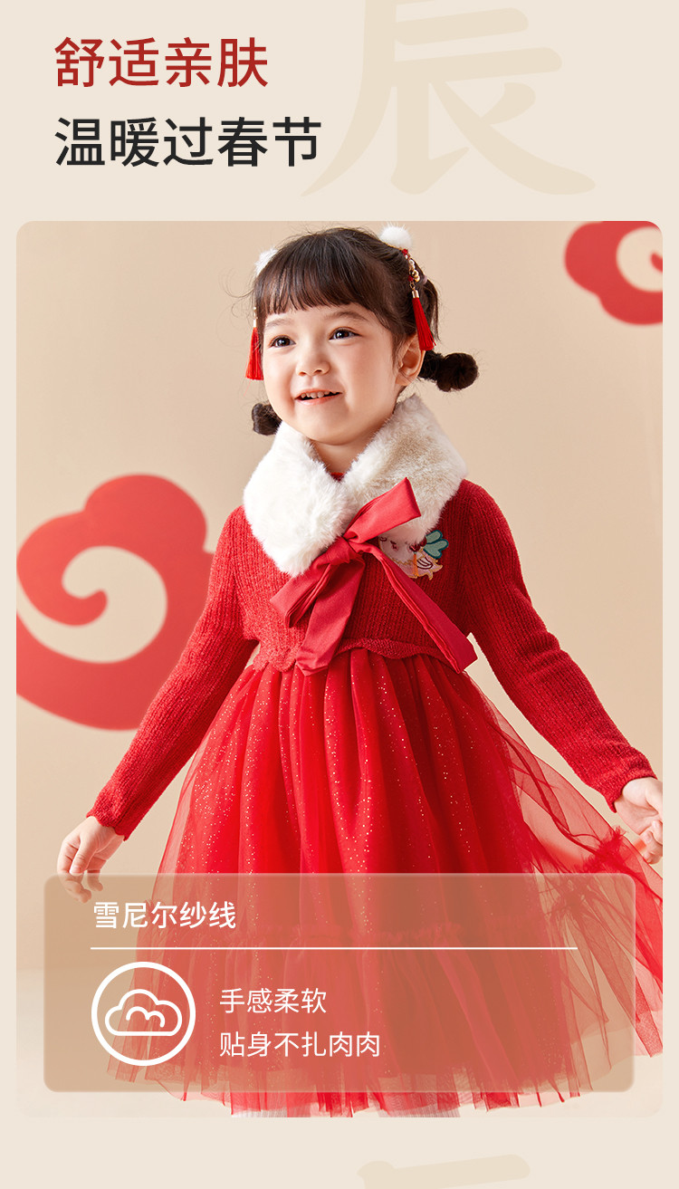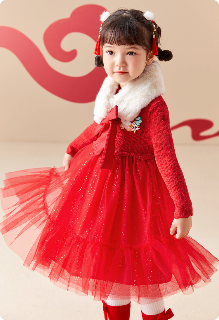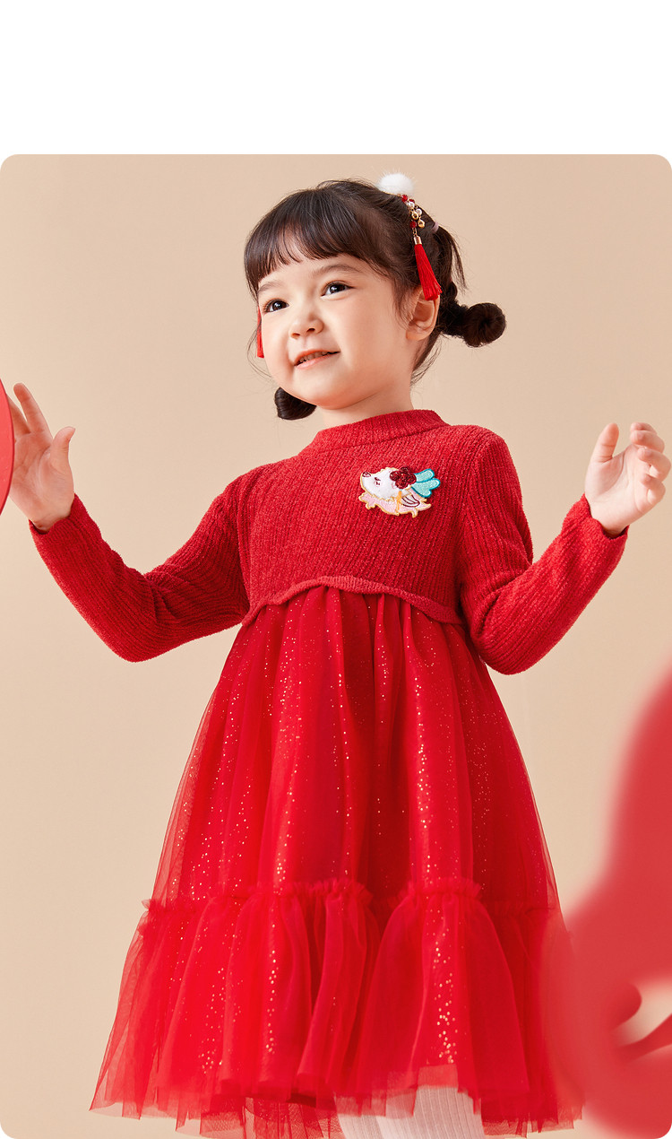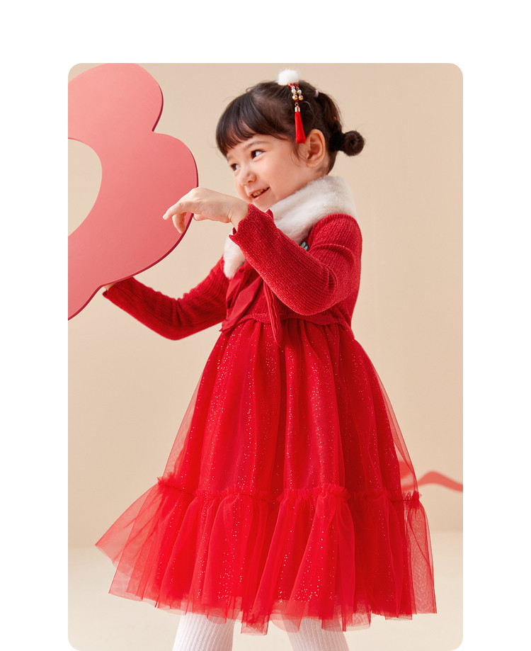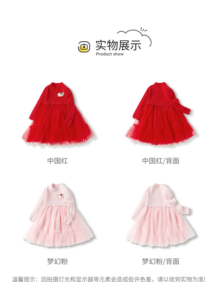 商品名称:国风服公主针织纱裙女童连衣裙儿童裙子春秋季洋气网纱裙甜美百搭 666309