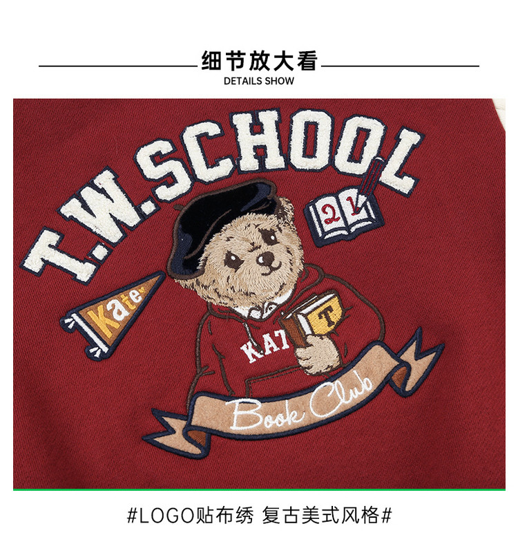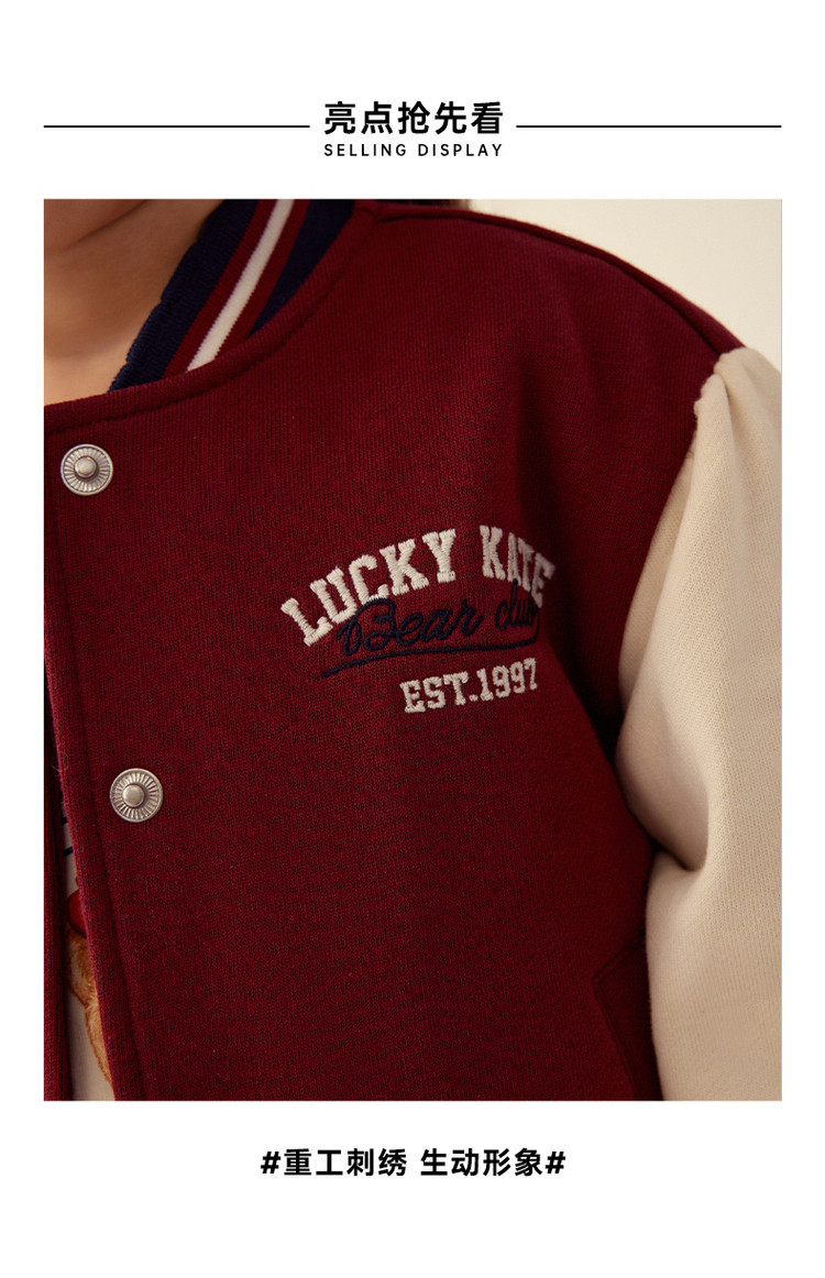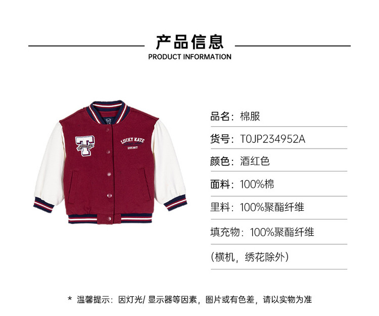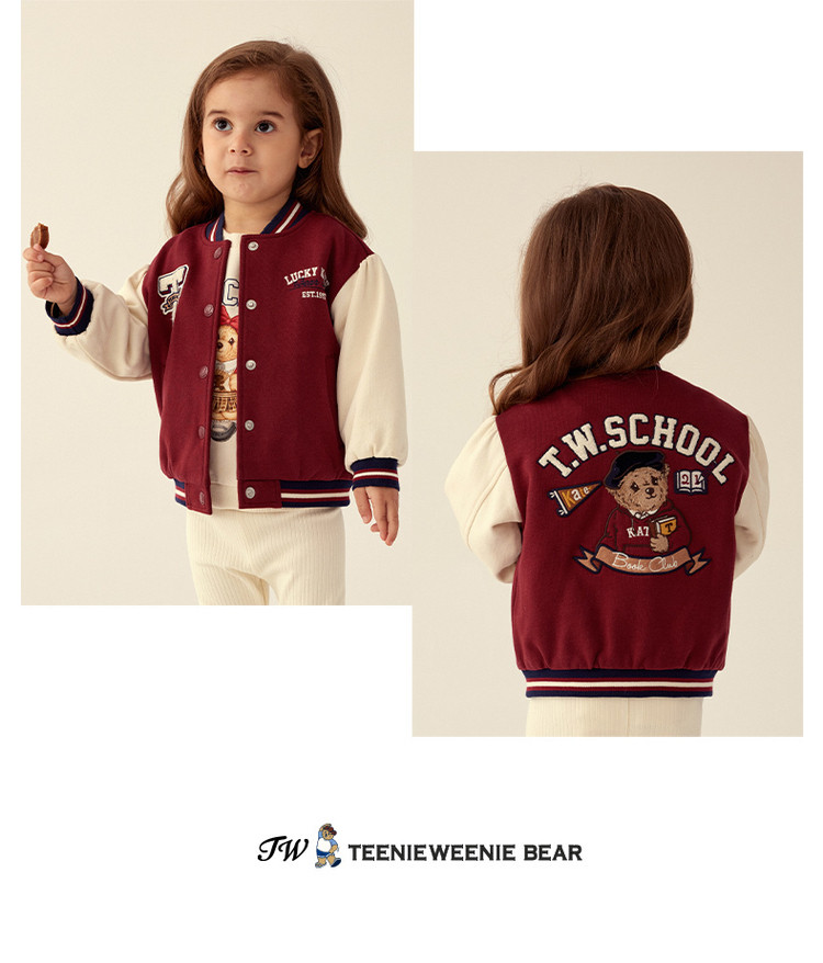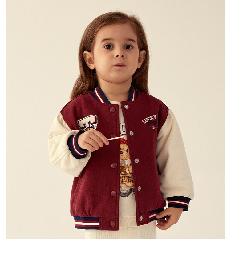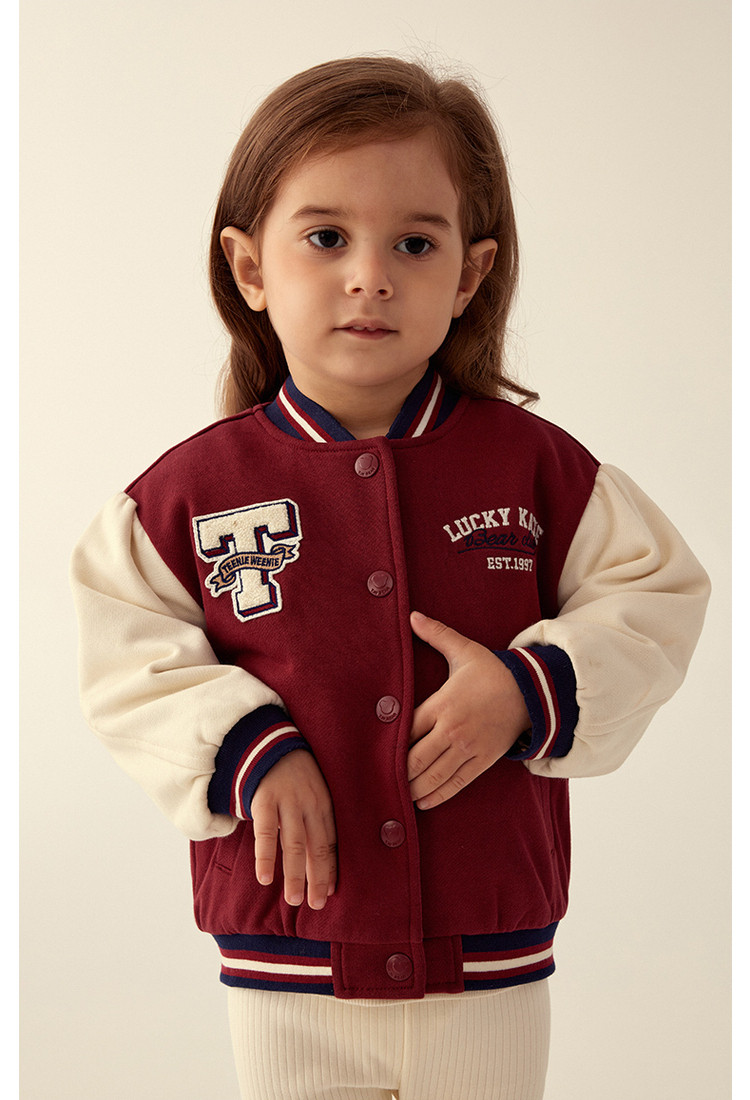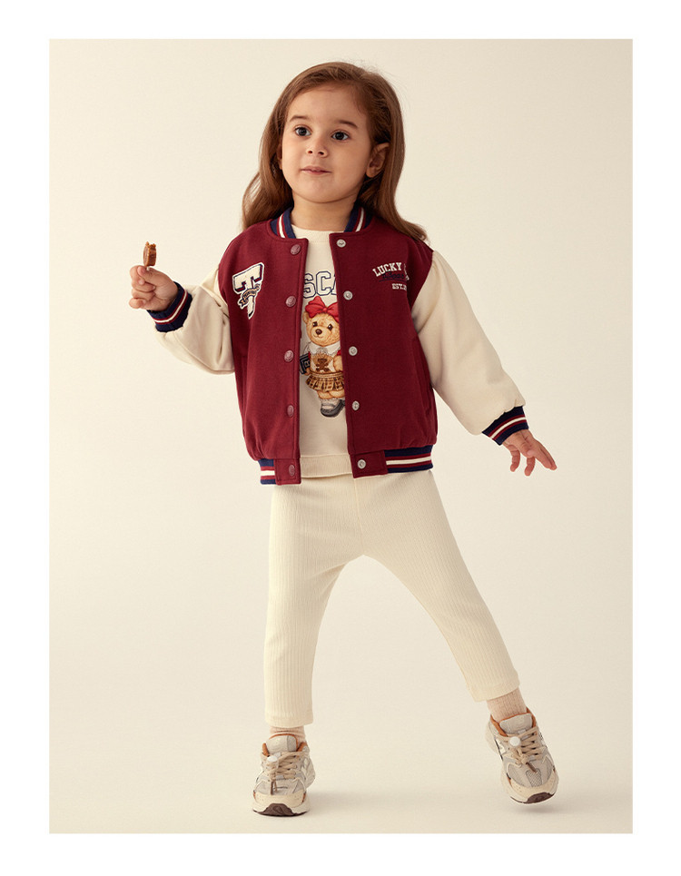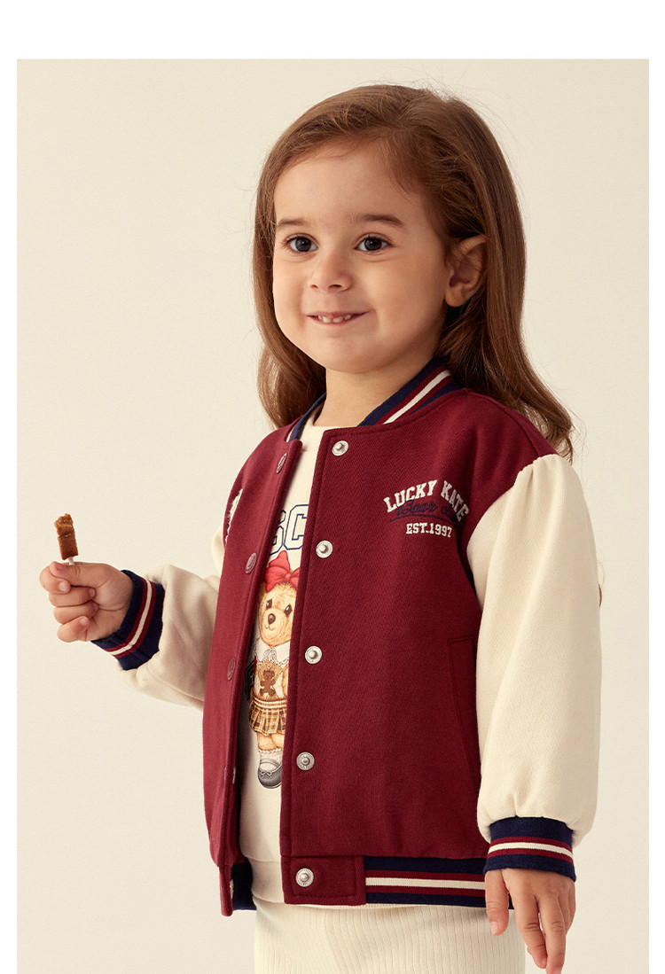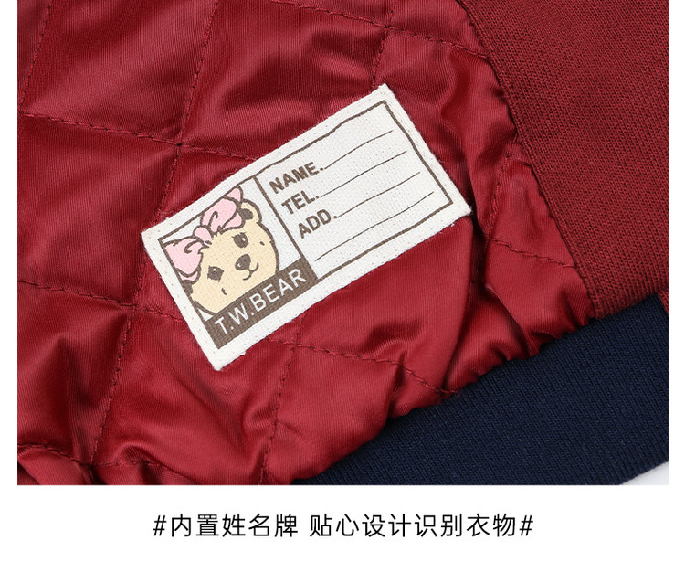 商品名称:小熊童装春季款女宝宝学院刺绣棒球棉服 270593