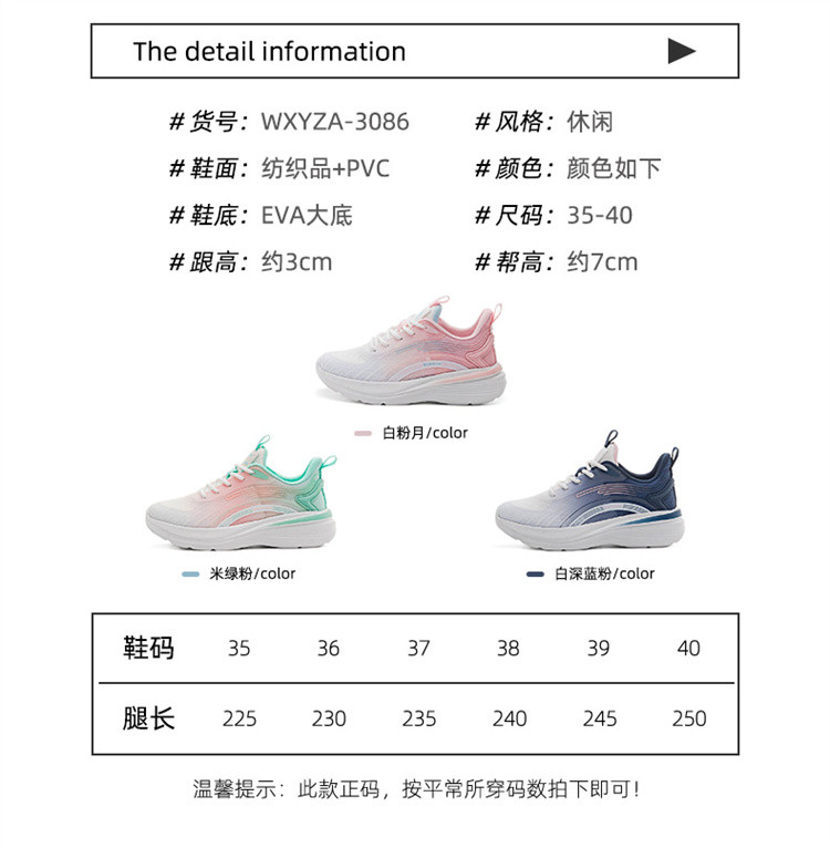 商品名称:透气网面休闲运动鞋女春夏季轻便薄款女鞋厚底百搭跑步鞋子女款 532544