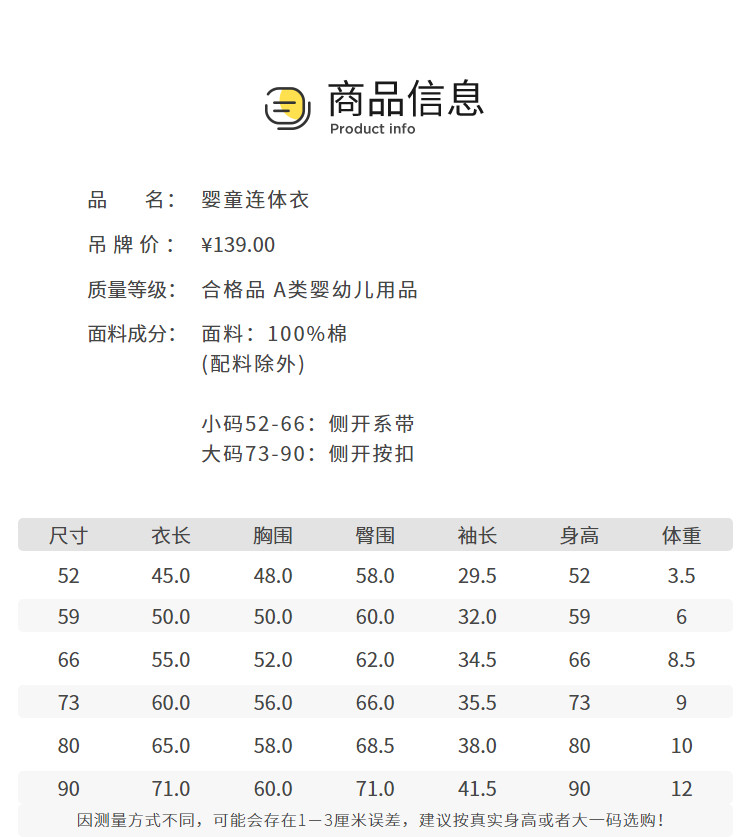 | 尺码 | 衣长(cm) | 身高(cm) | 臀围(cm) | 袖长(cm) | 适合年龄 | 胸围(cm) | 号型 |
