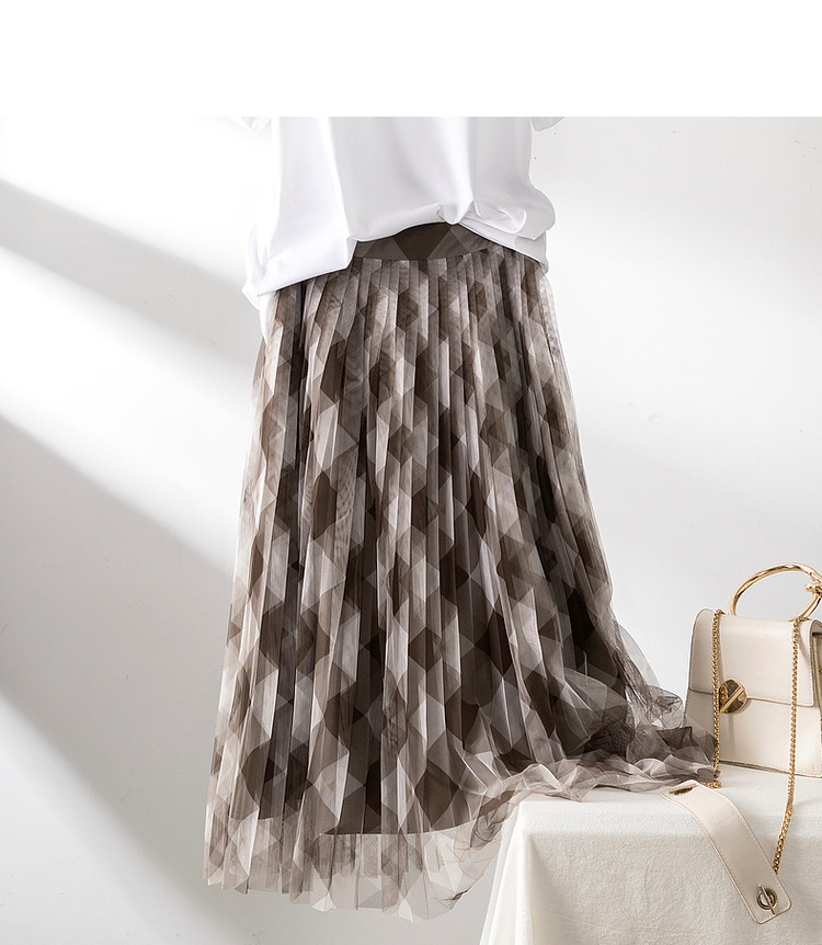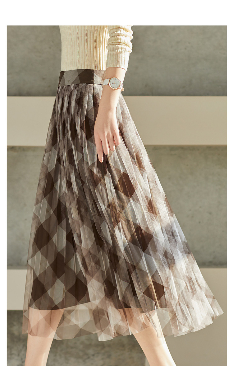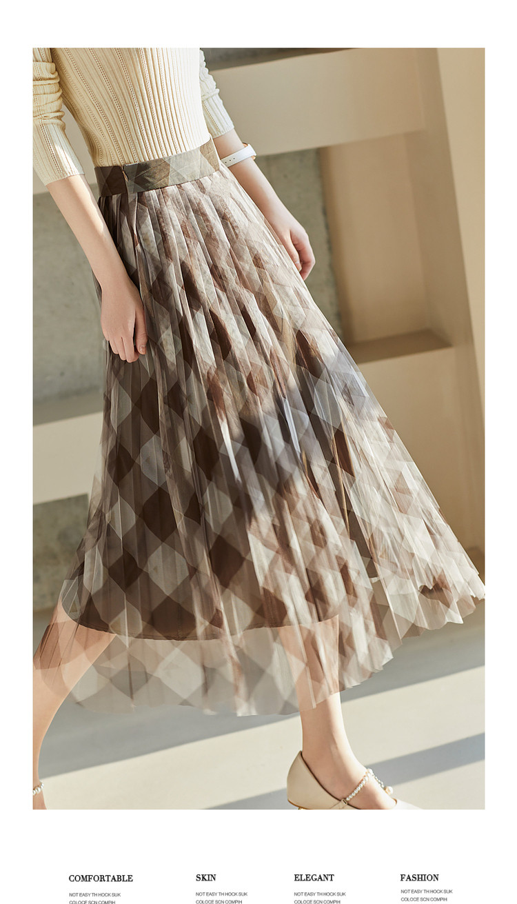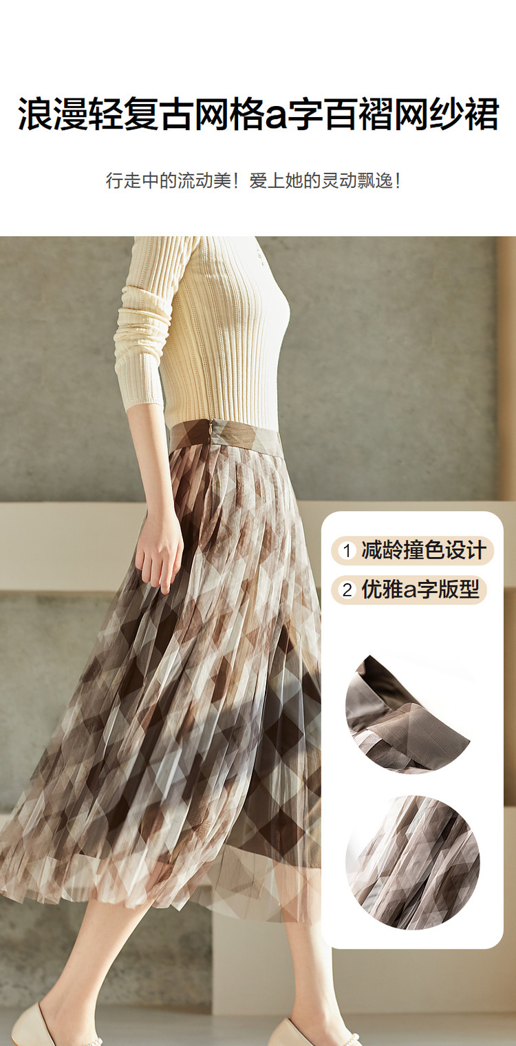 商品名称:【网格百褶网纱裙】春秋复古中腰宽松a字撞色半身裙女 219905