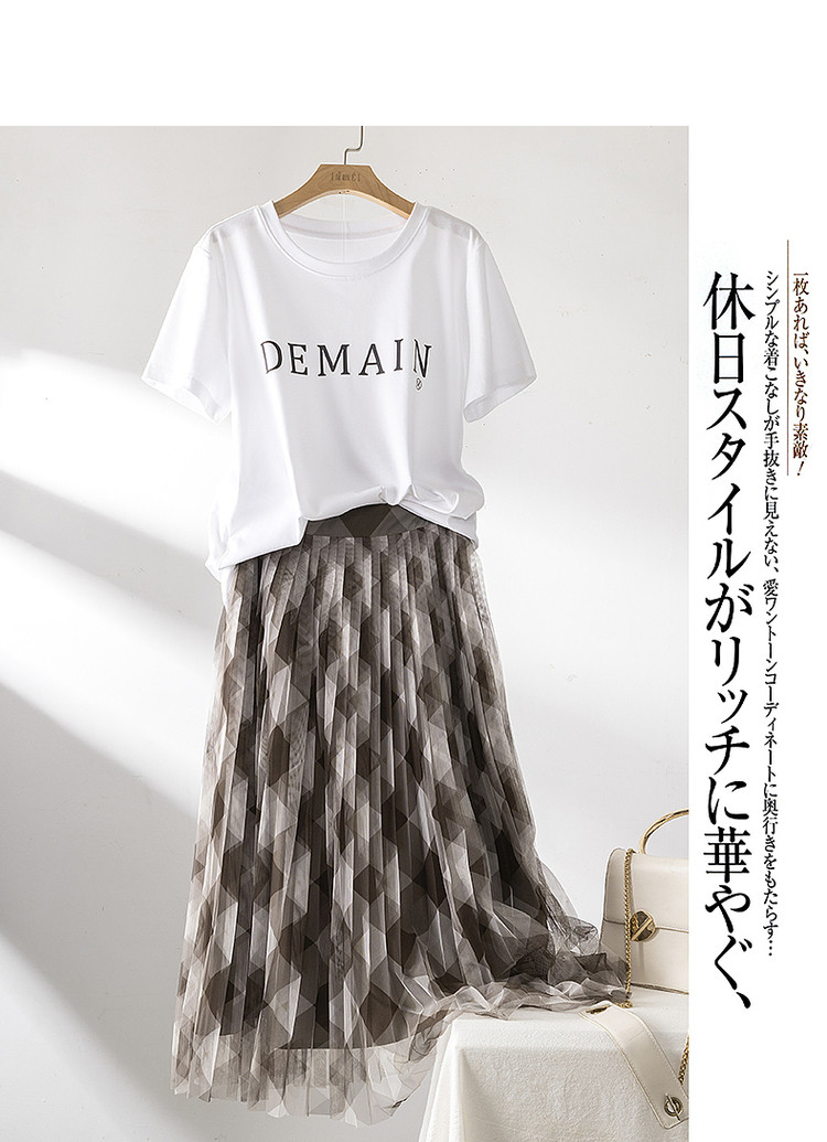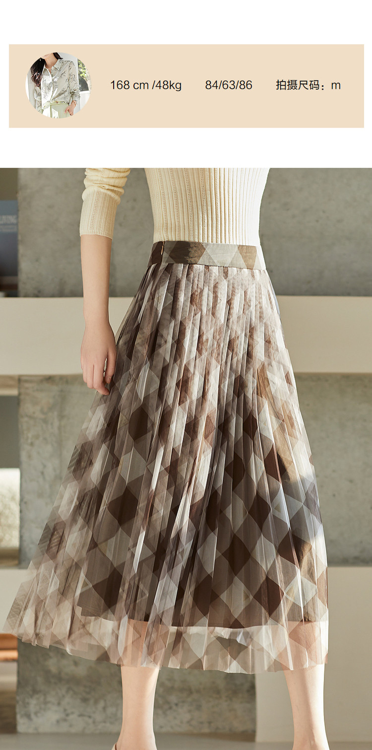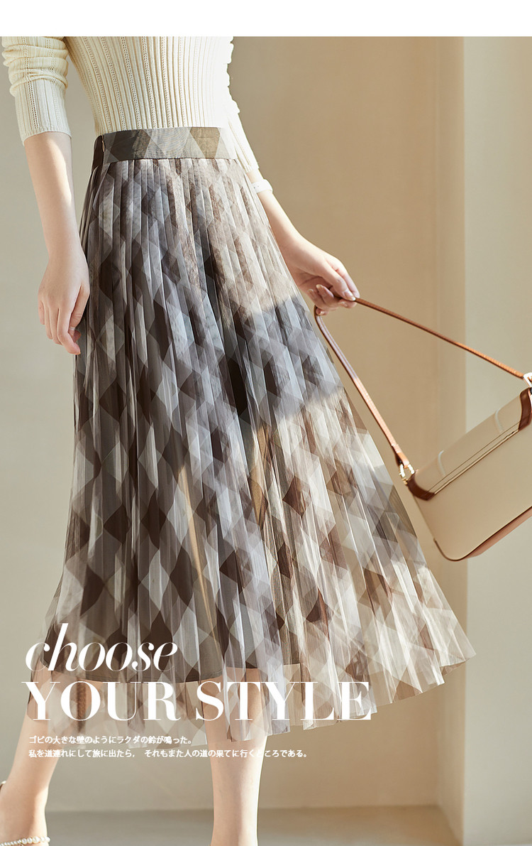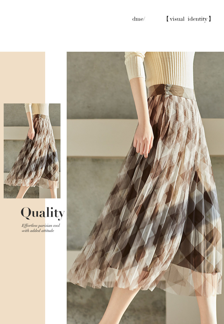 商品名称:【网格百褶网纱裙】春秋复古中腰宽松a字撞色半身裙女 219905