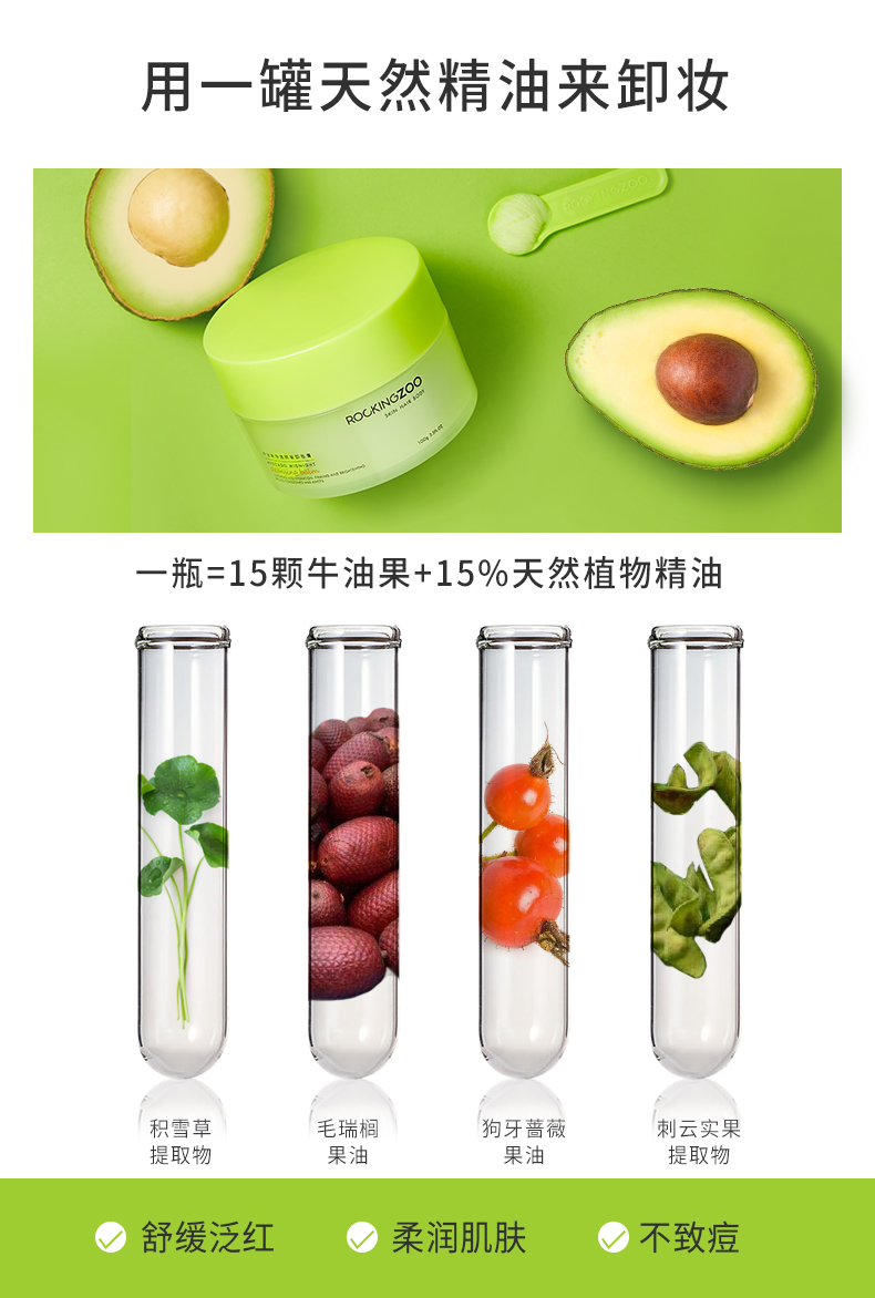 商品名称:摇滚动物园 牛油果净透晚安卸妆膏 100g 养肤不紧绷