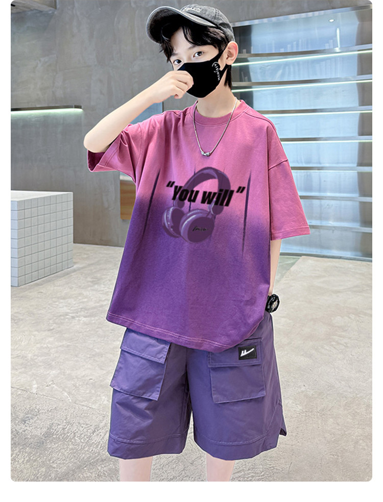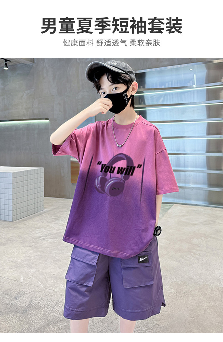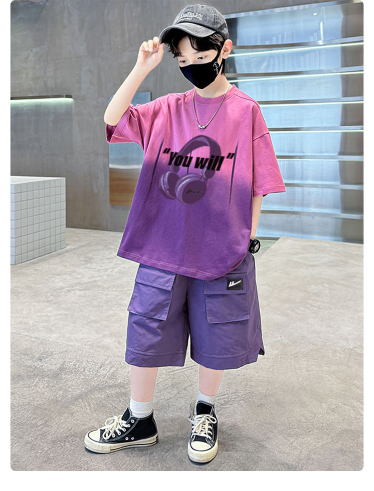商品名称:【时尚撞色】童装男童休闲套装夏季帅气短袖短裤两件套 443411