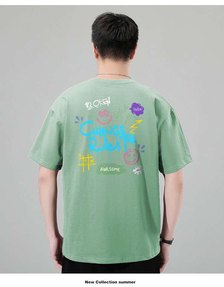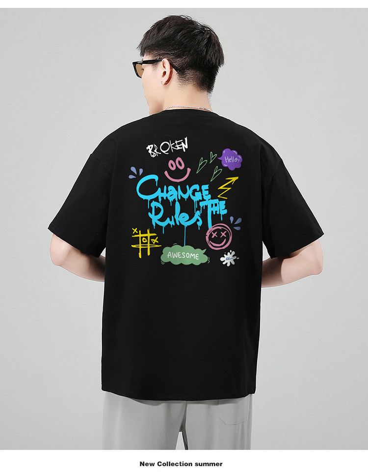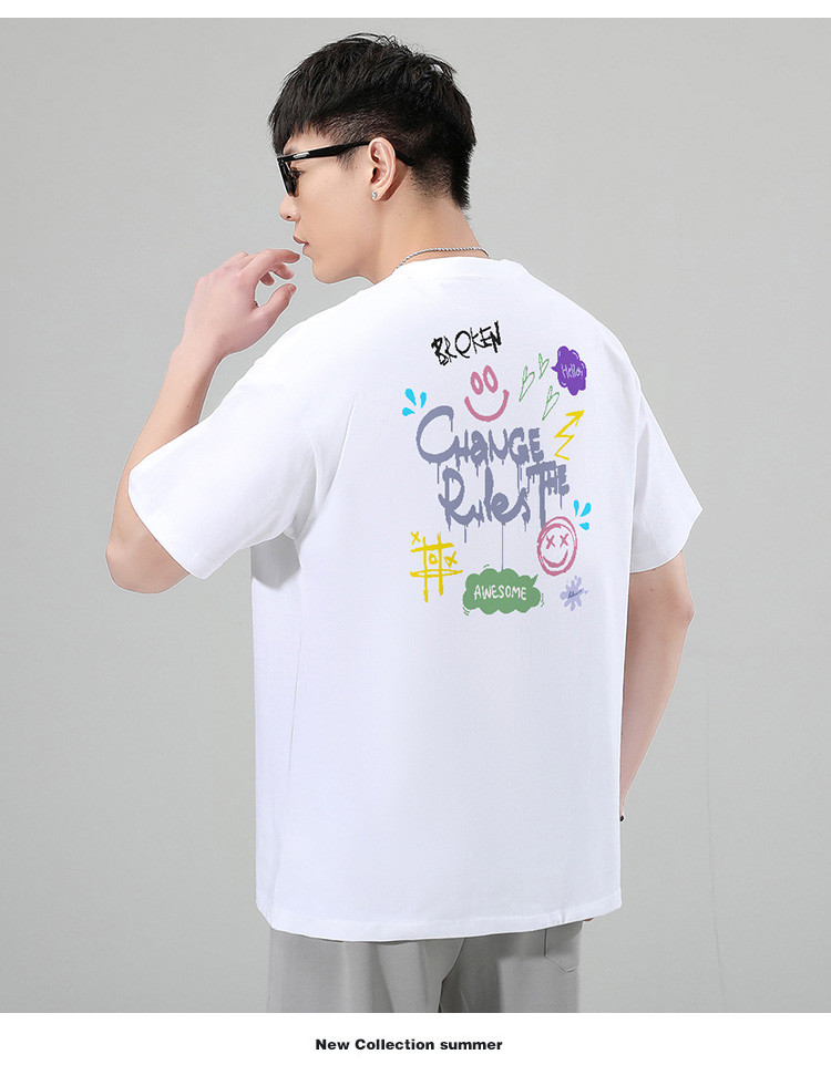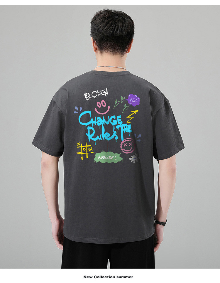 【情侣款】学院风夏季时尚潮流休闲上衣百搭圆领男女款短袖T恤 514003