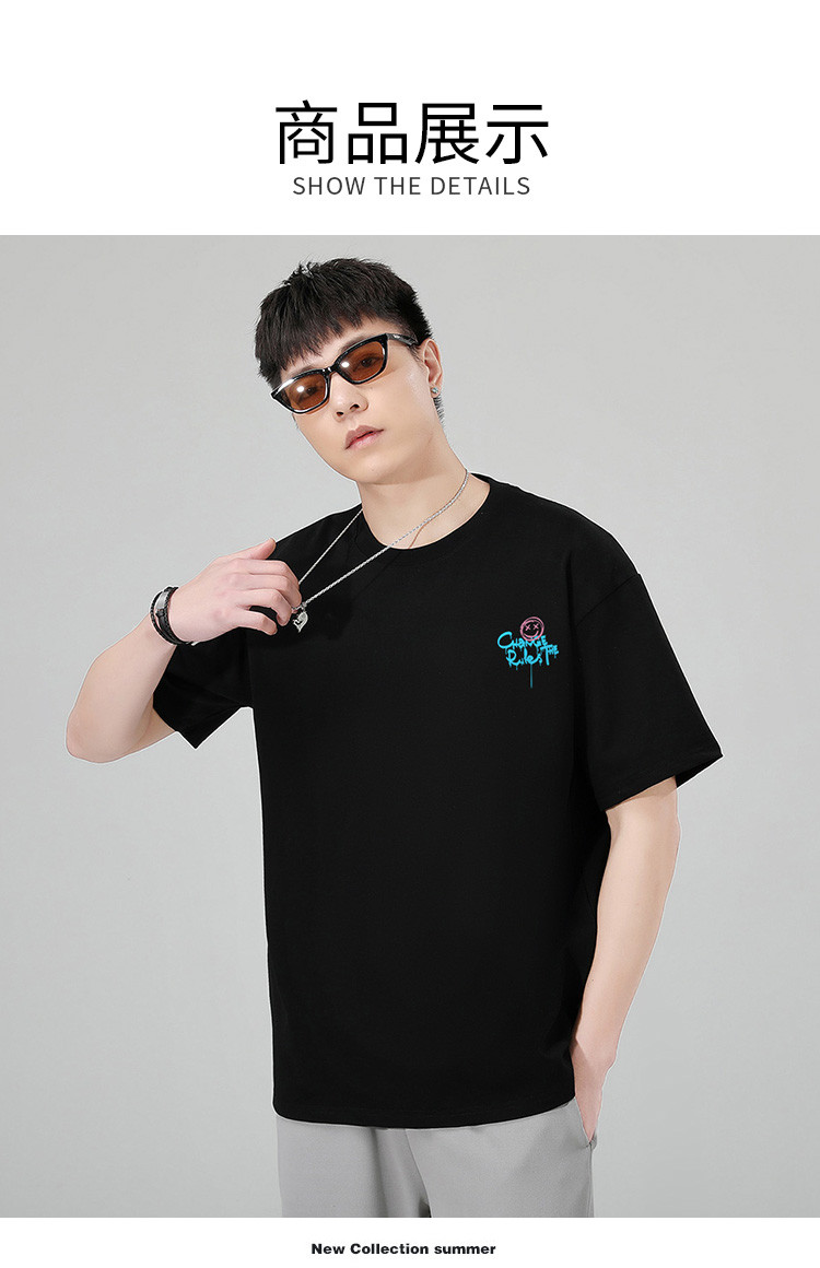 商品名称:【情侣款】学院风夏季时尚潮流休闲上衣百搭圆领男女款短袖T恤 514003