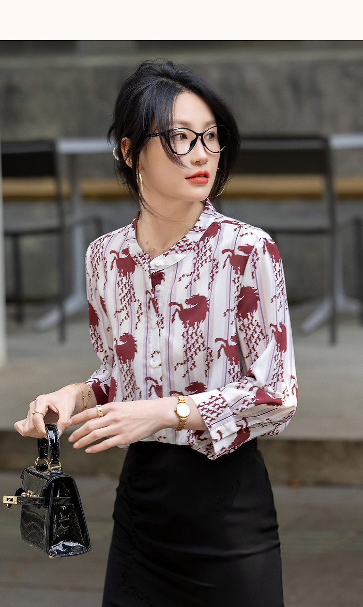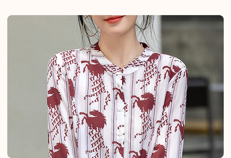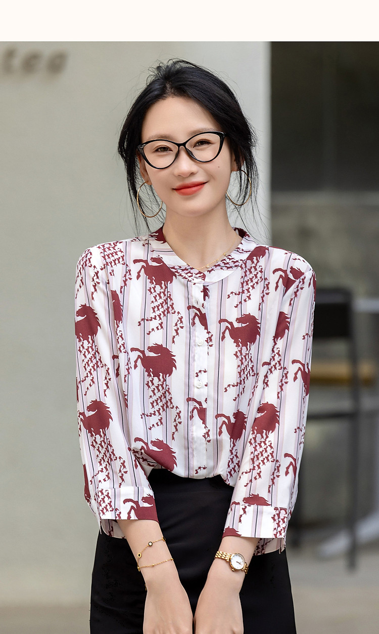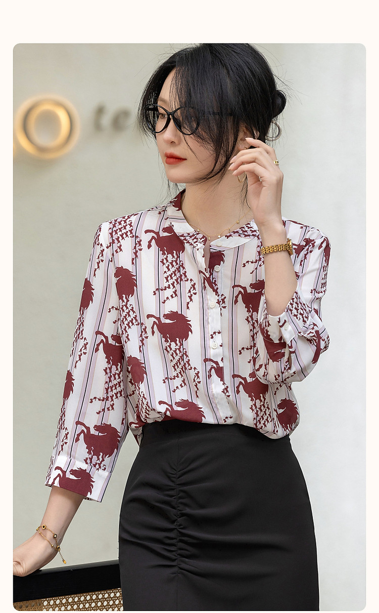 【岁月如歌】春秋法式廓形立领设计感抽褶衬衫九分袖衬衣女上衣 690113