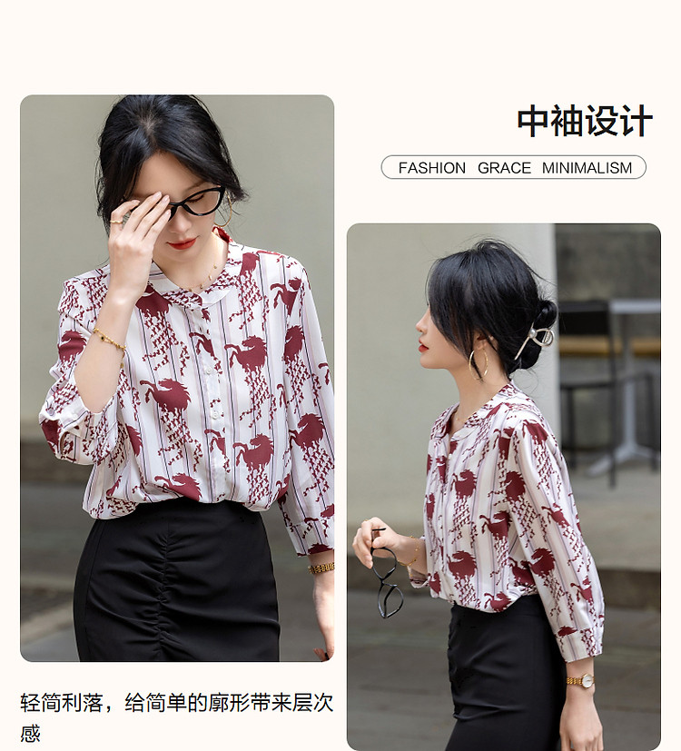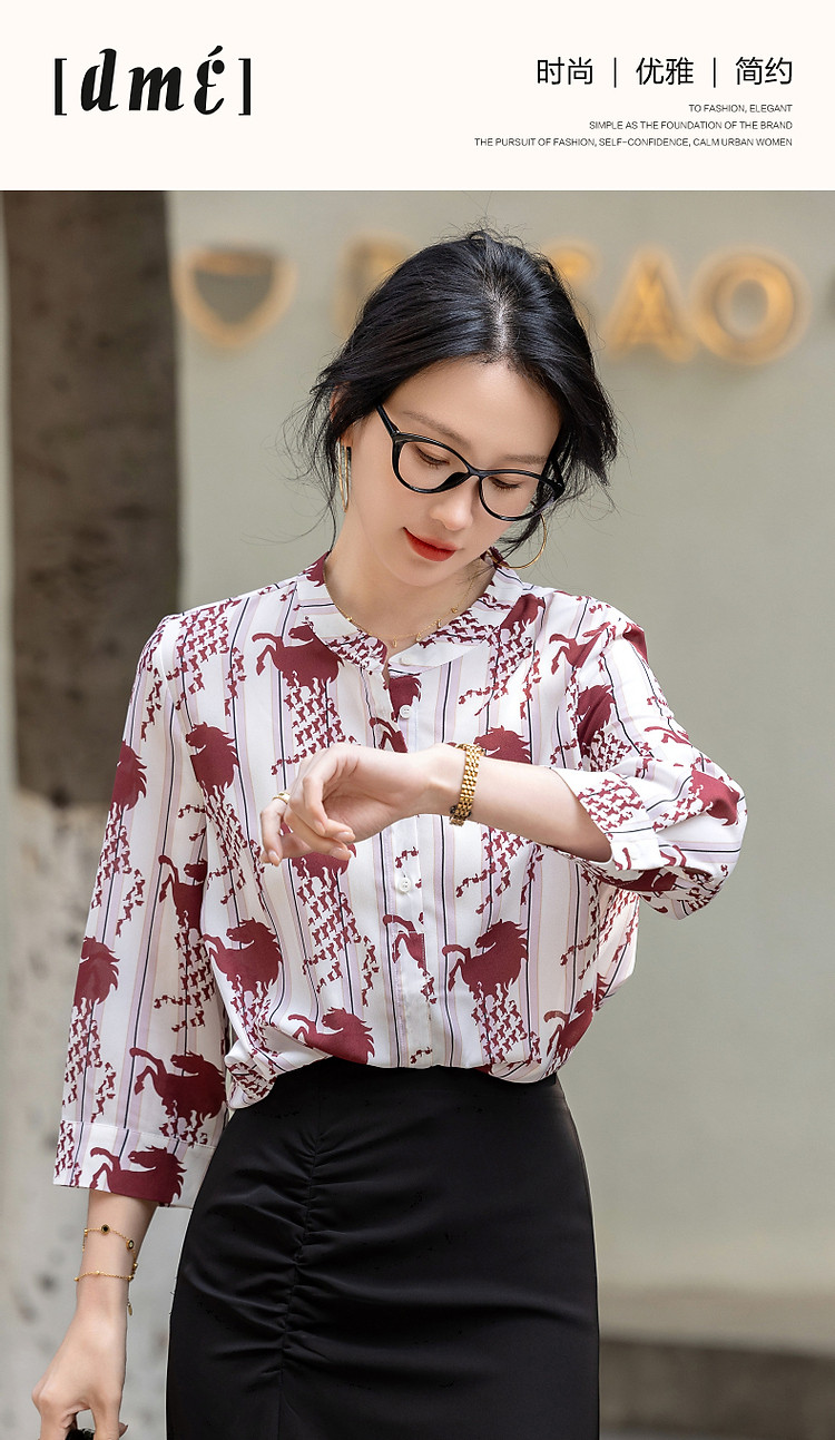 商品名称:【岁月如歌】春秋法式廓形立领设计感抽褶衬衫九分袖衬衣女上衣 690113