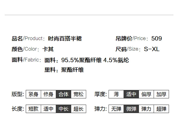 商品名称:【前开衩一步裙】春秋通勤优雅收腰H型半身裙女中长款 532033