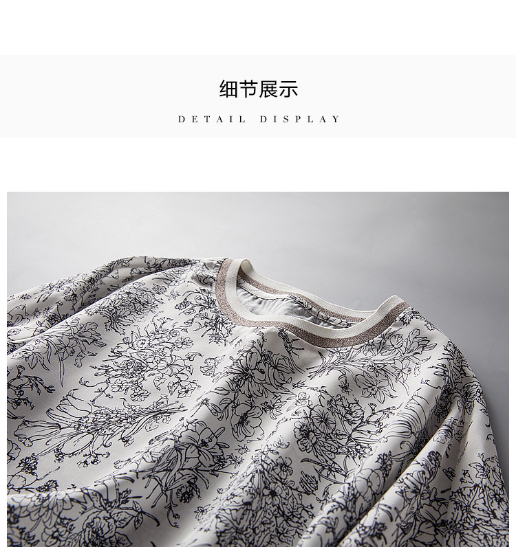 商品名称:【水墨印花】夏金银丝圆领连肩袖五分袖衬衣女式上衣 078913