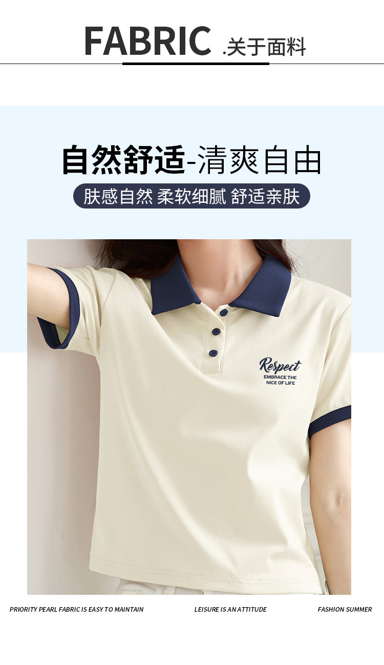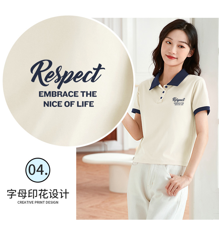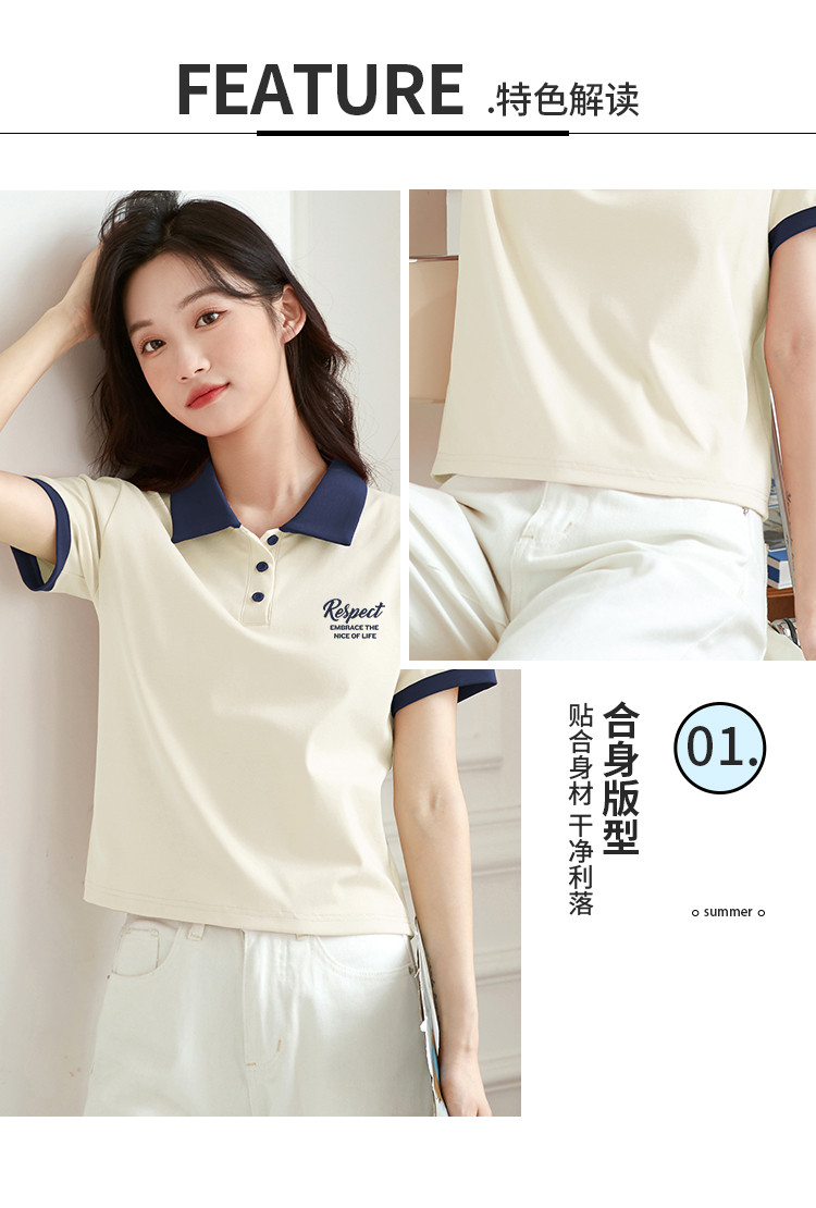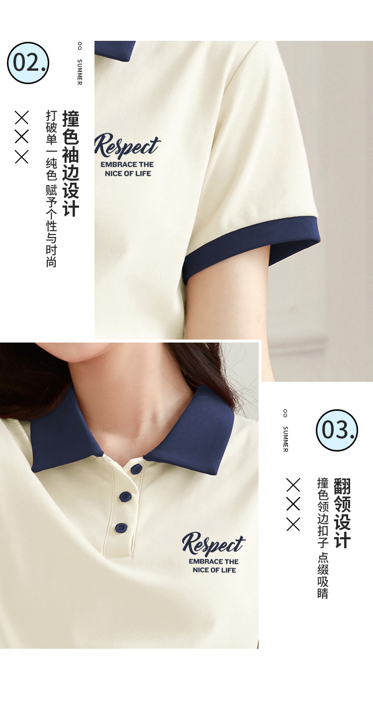 米子旗夏季女polo领印花T恤撞色拼接设计百搭短袖上衣 542106