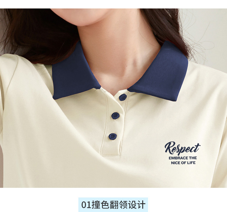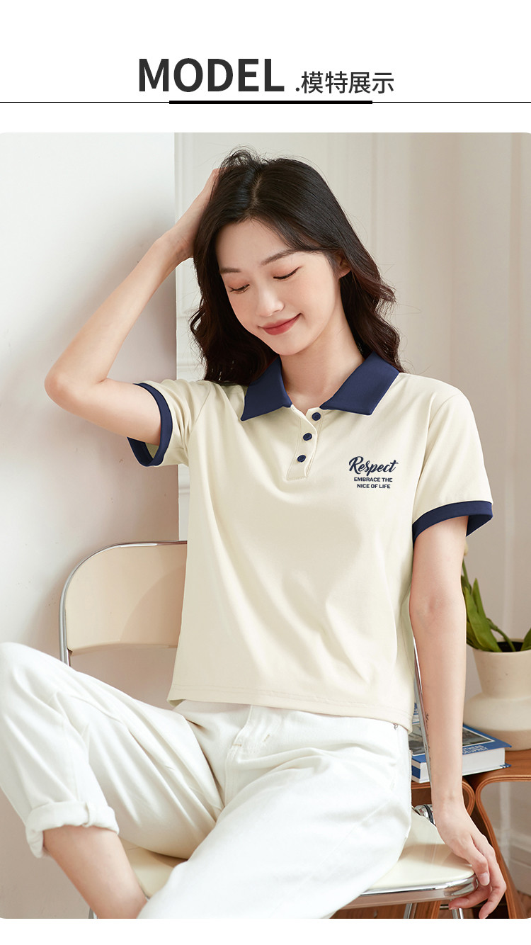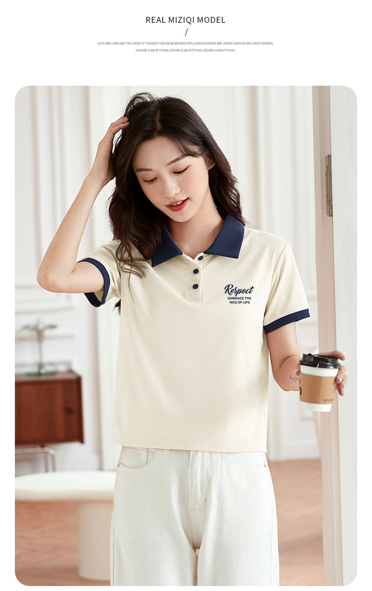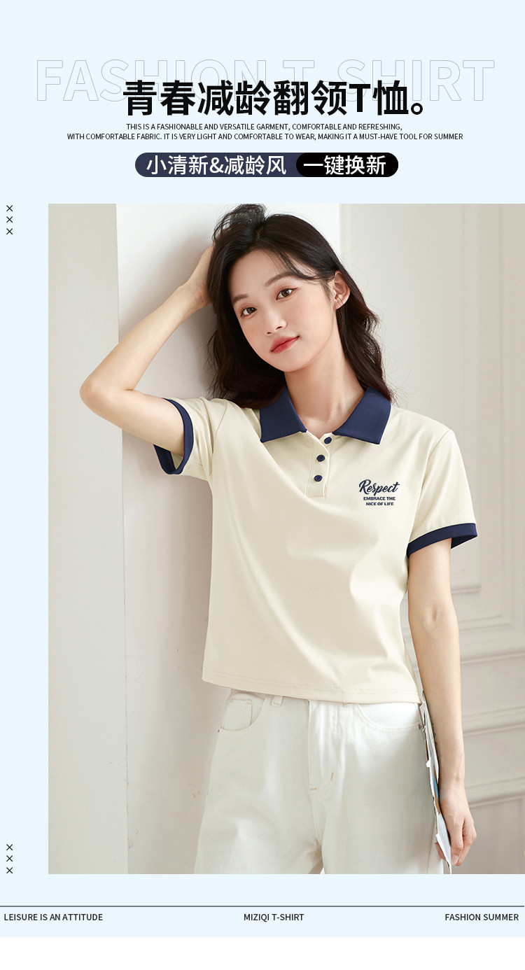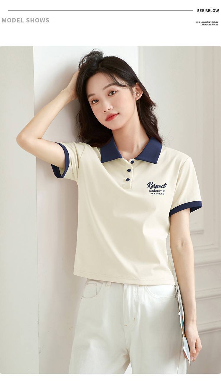 商品名称:米子旗夏季女polo领印花T恤撞色拼接设计百搭短袖上衣 542106