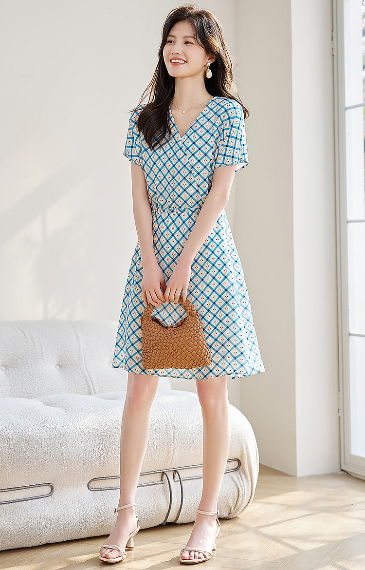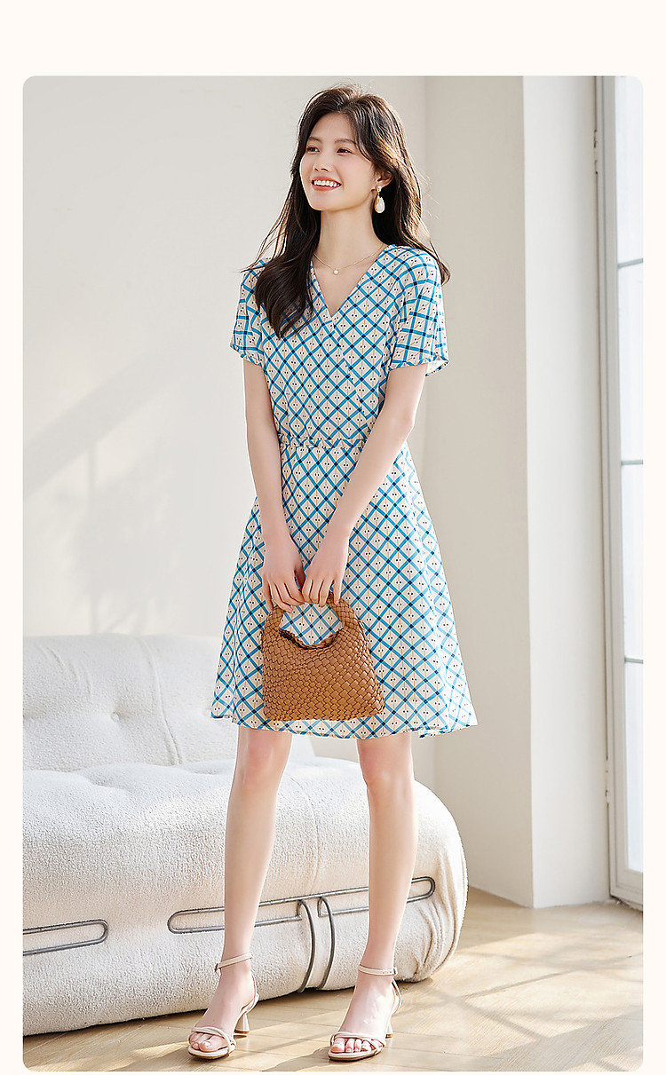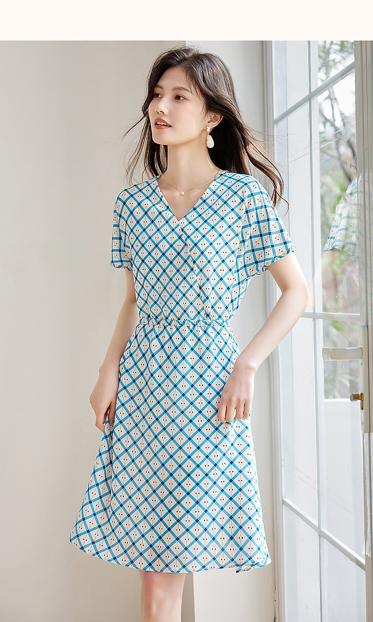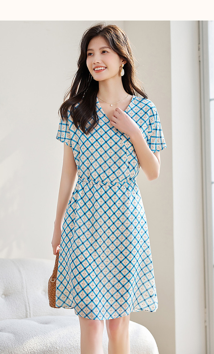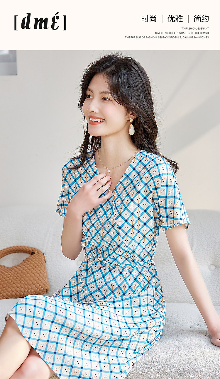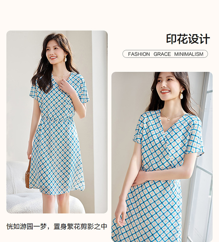 商品名称:【真丝收藏家】夏呼吸感桑蚕丝抽绳印花调节腰女式连衣裙 584449