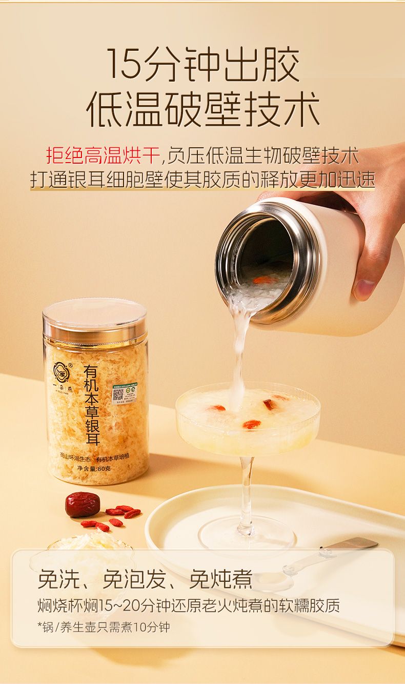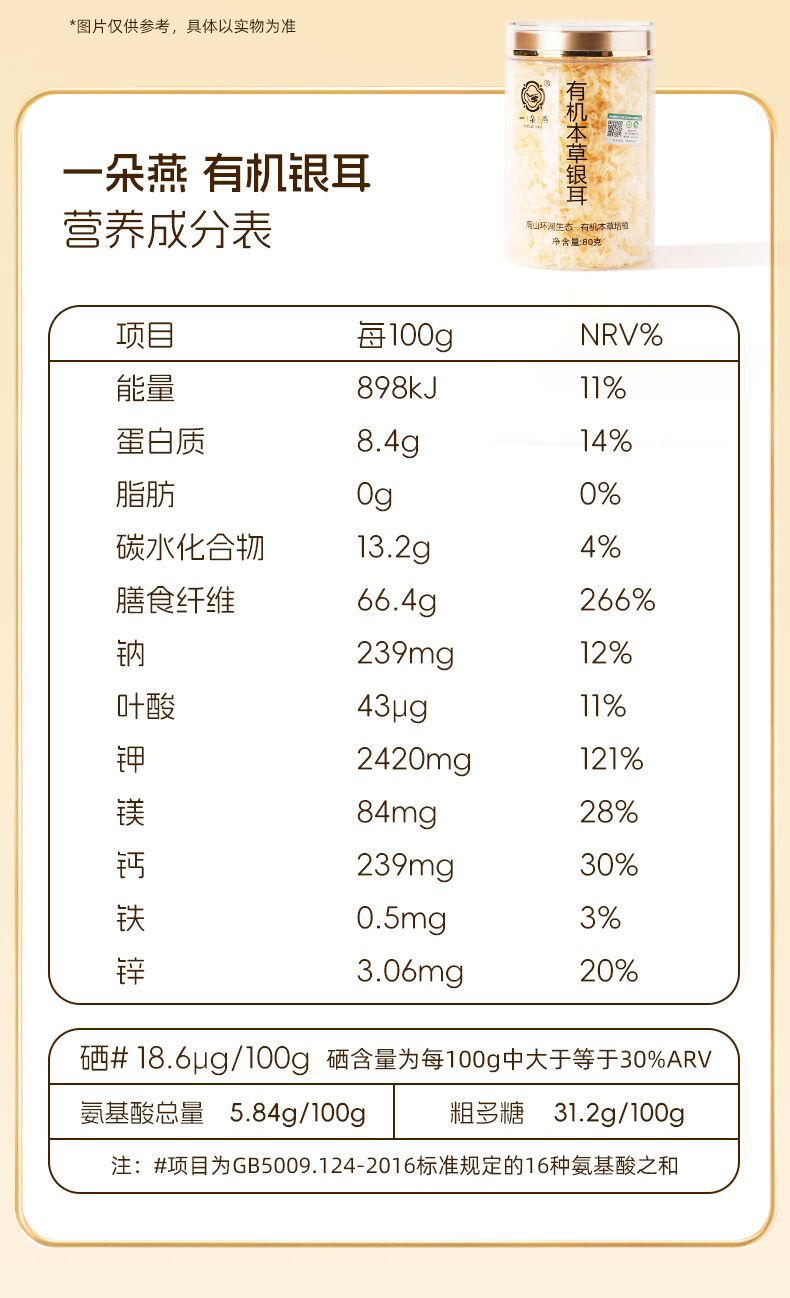 商品名称:一朵燕有机本草银耳羹免煮古田干货孕妇0糖代餐送焖杯