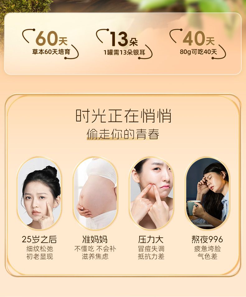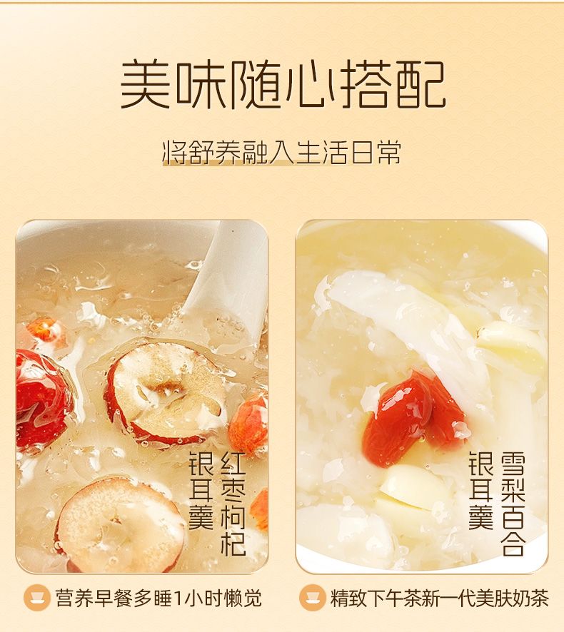 有机银耳80g*3罐 2)银耳伴侣2包(内含20小包) 3)260ml焖烧杯*1 4)小金勺*1 5)精美礼袋*1