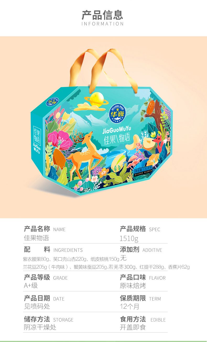商品名称:华巍 1510g佳果物语坚果礼盒(8袋装)