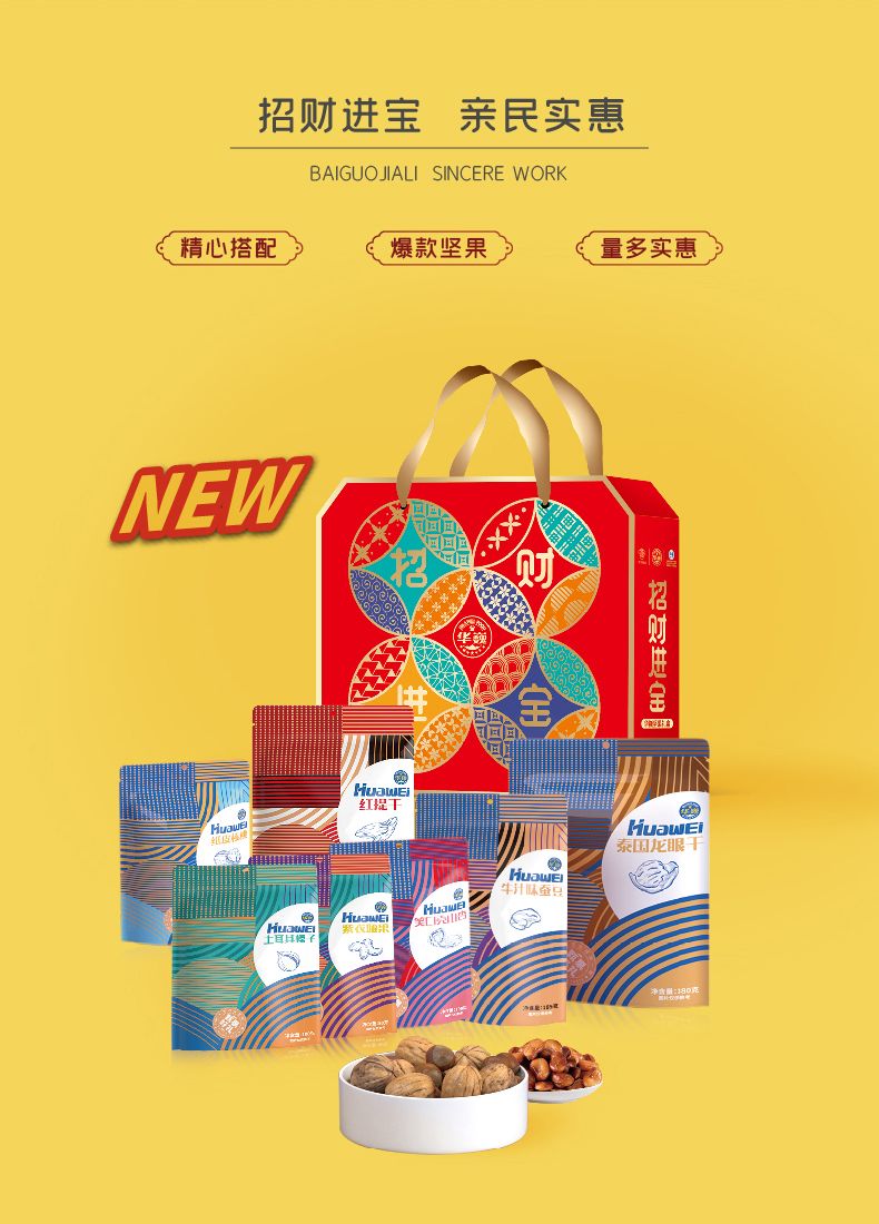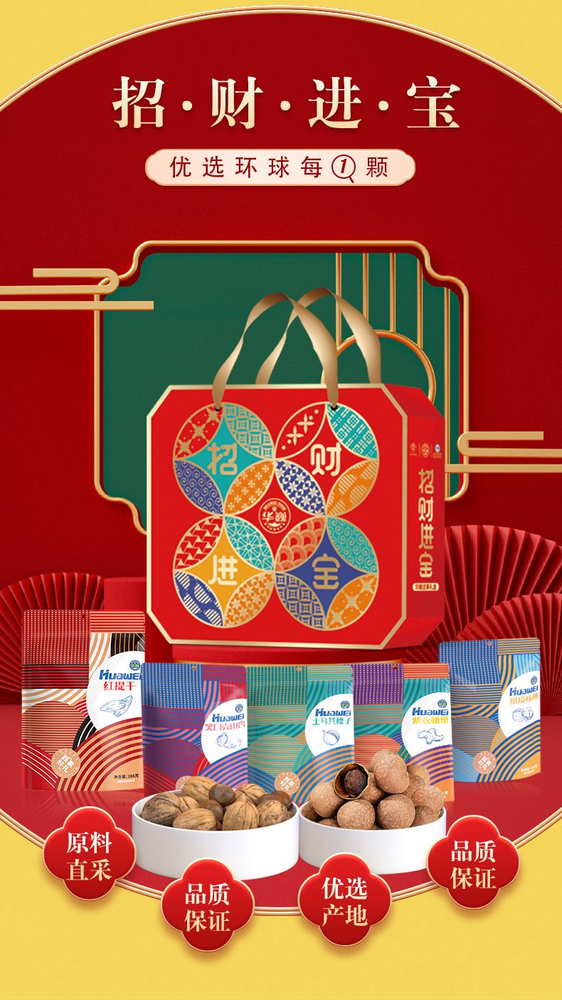 商品名称:华巍 1315g招财进宝 坚果礼盒(7袋装)