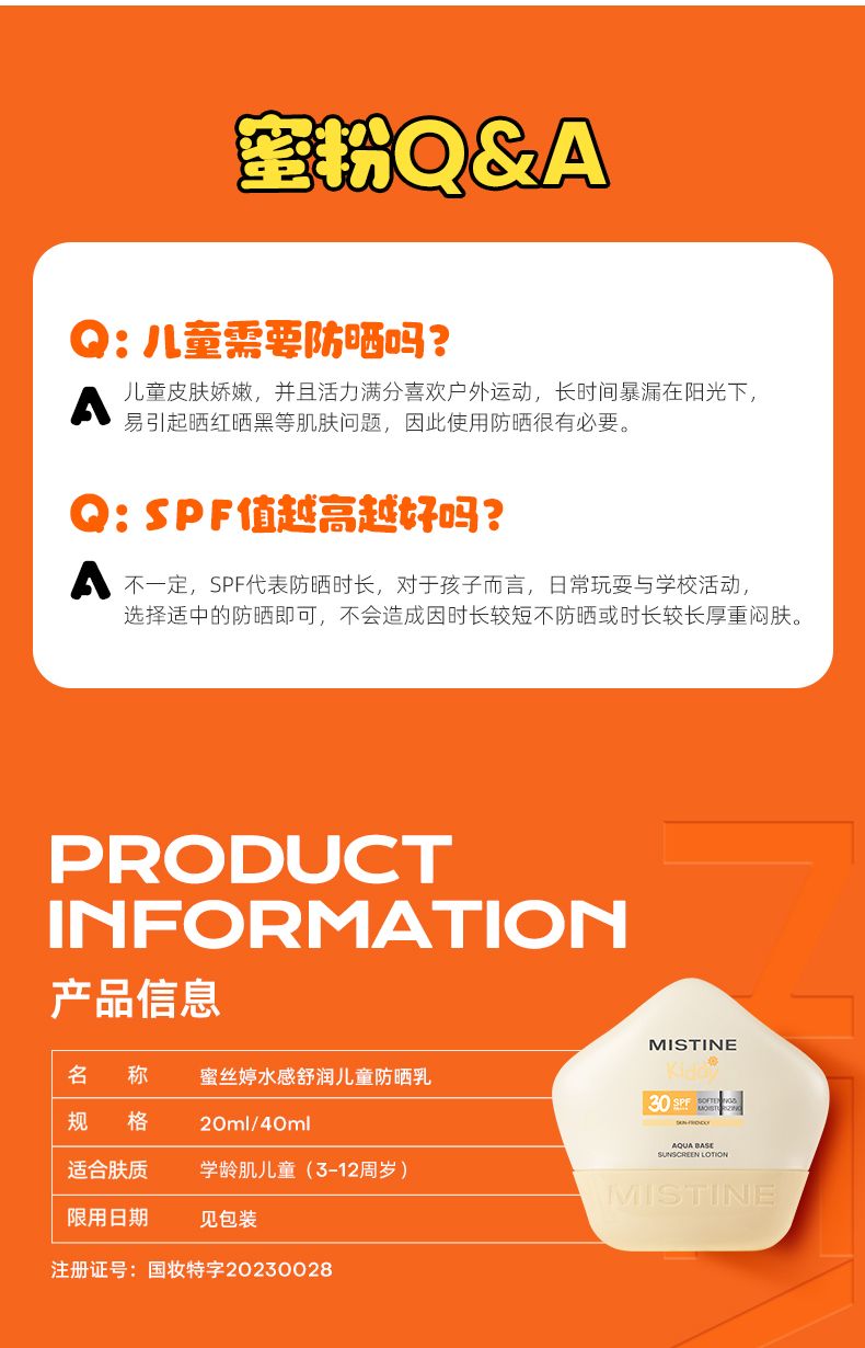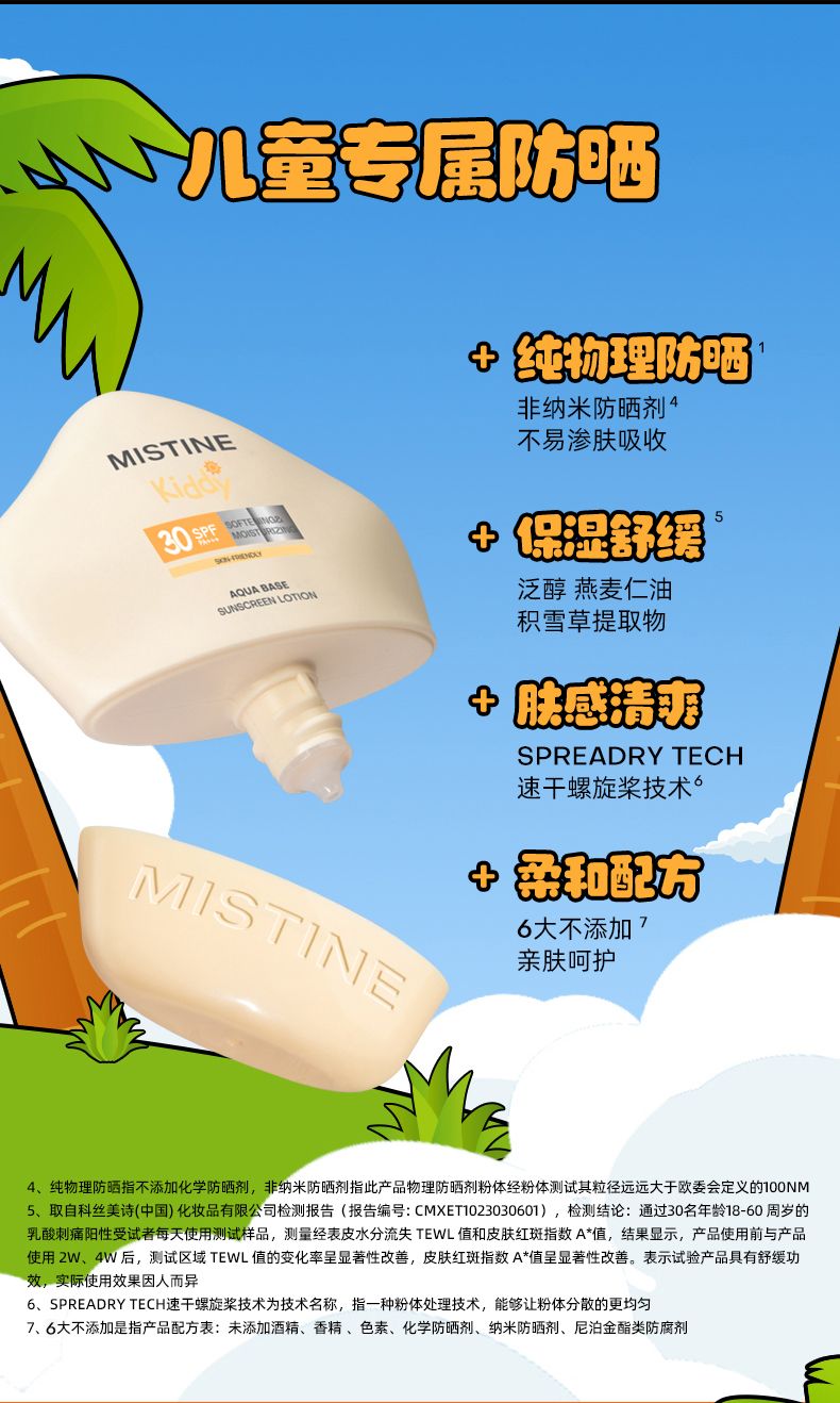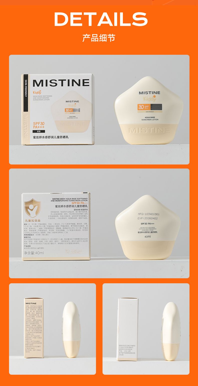 商品名称:Mistine(蜜丝婷 )水感舒润儿童防晒乳SPF30PA+++ 40g