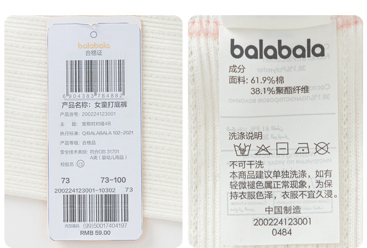 商品名称:巴拉巴拉宝宝裤子婴儿打底裤女童休闲裤夏季薄款弹力舒适甜美可爱 340293